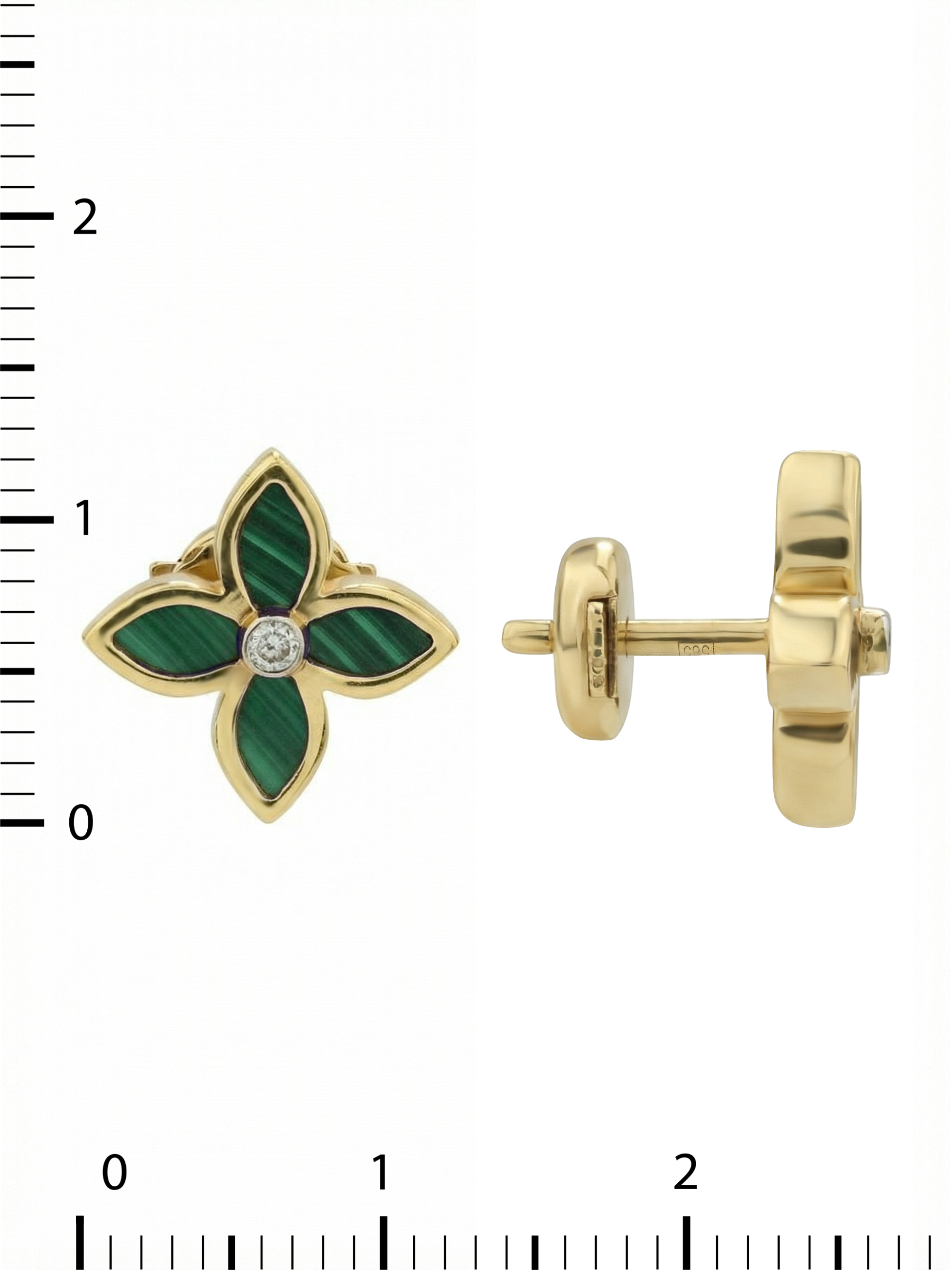 Серьги из лимонного золота c бриллиантами и малахитом