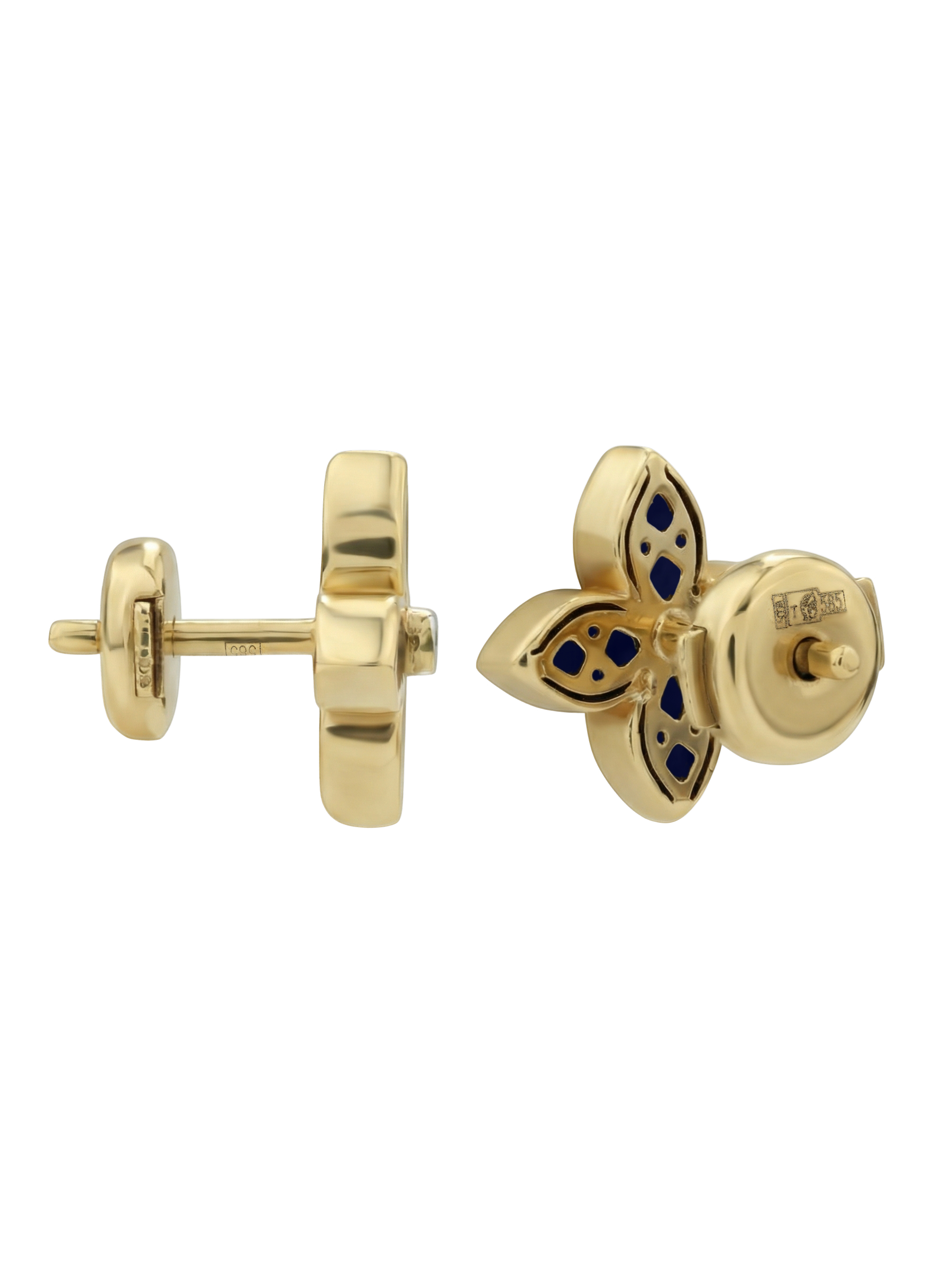 Серьги из лимонного золота c бриллиантами и лазуритом
