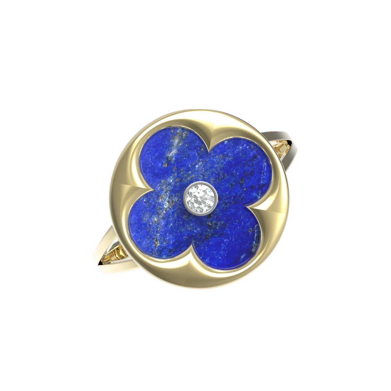 Кольцо из лимонного золота c бриллиантами и лазуритом