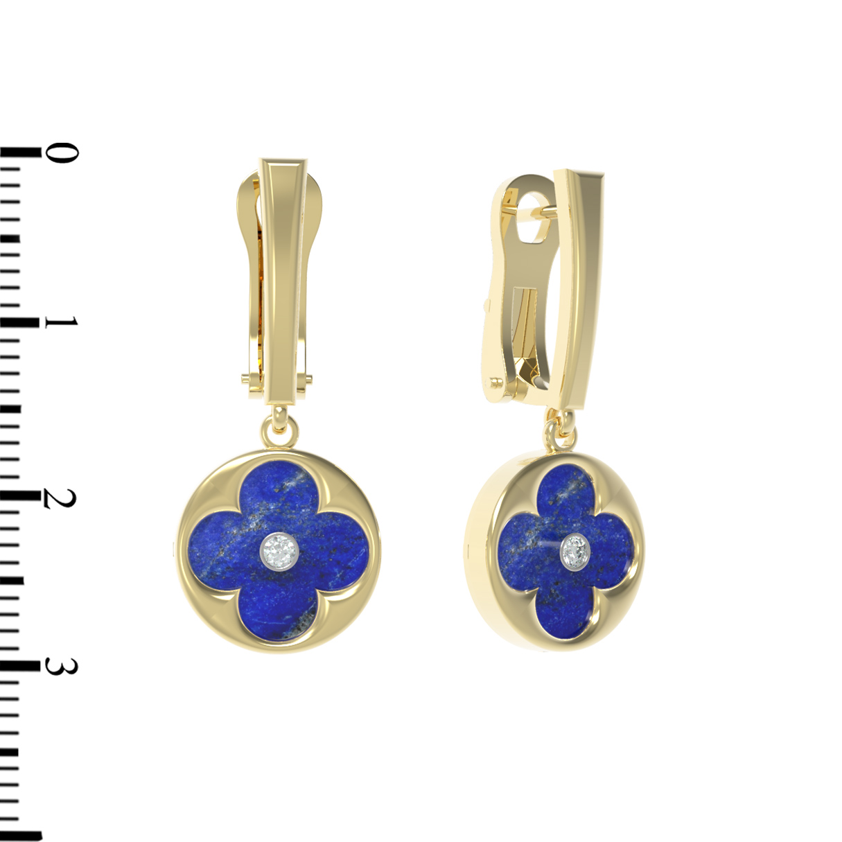 Серьги из лимонного золота c бриллиантами и лазуритом
