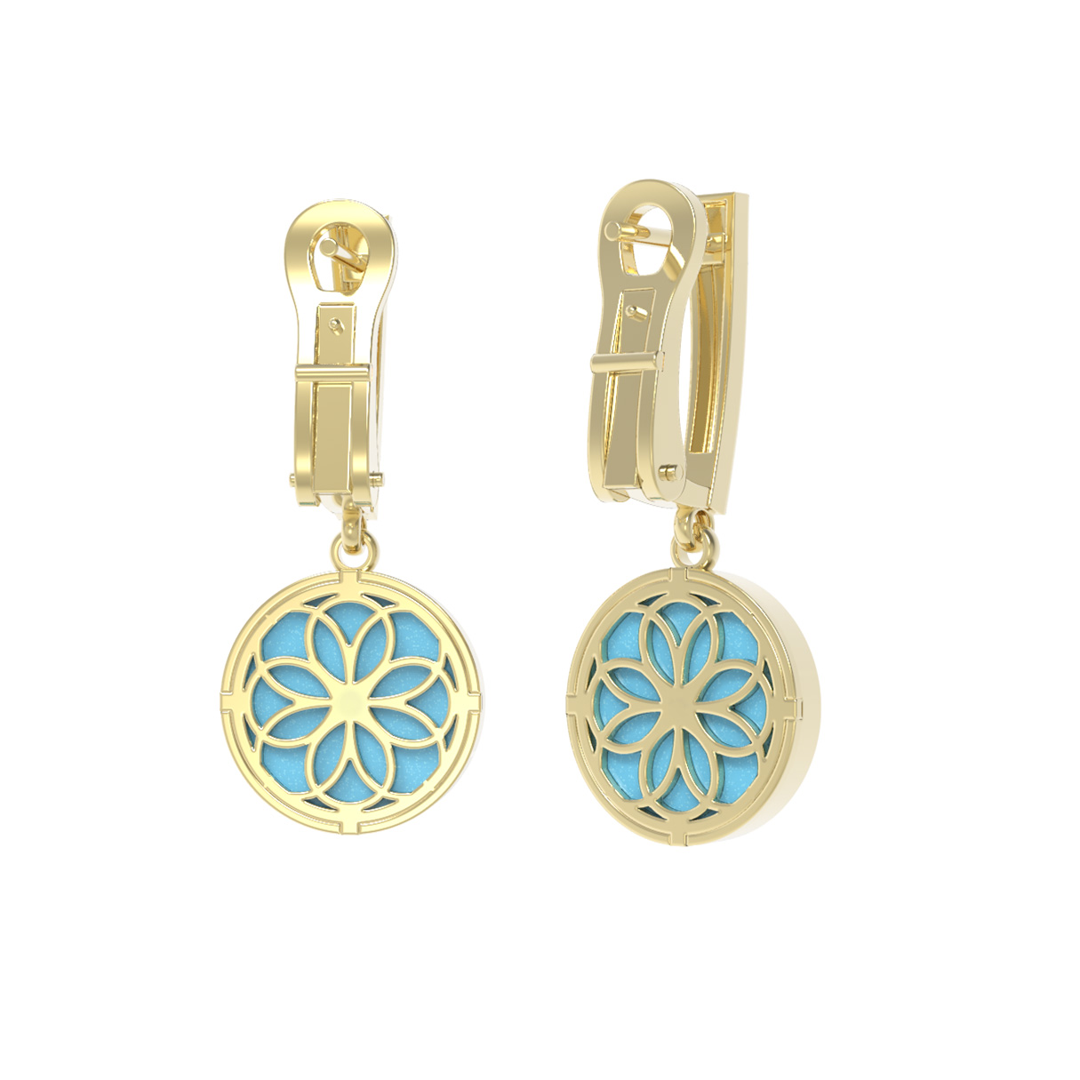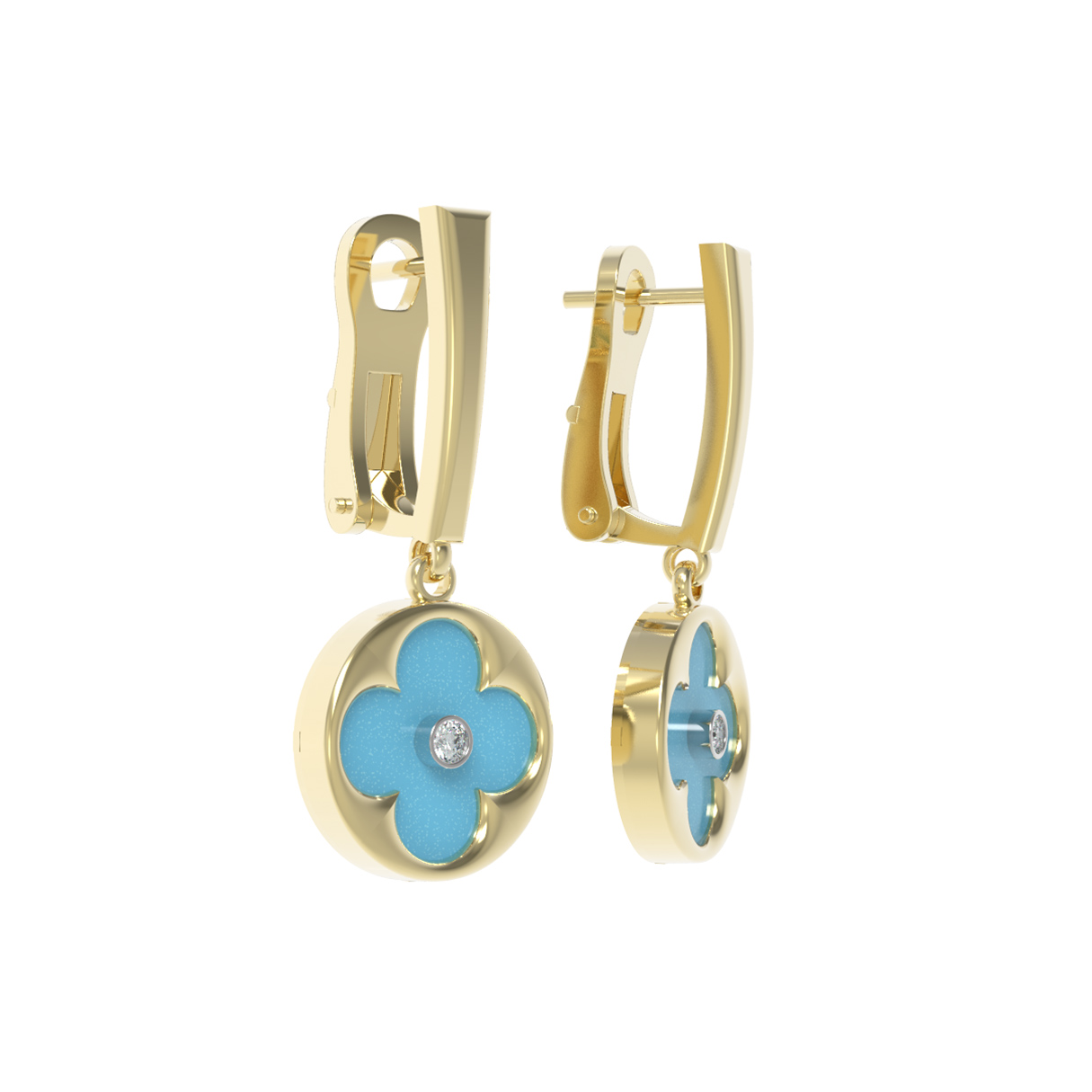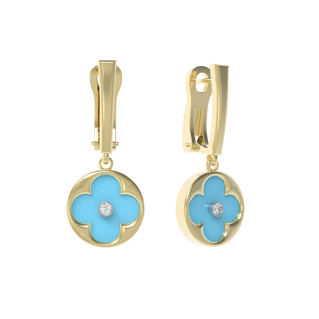 Серьги из лимонного золота c бриллиантами и бирюзой