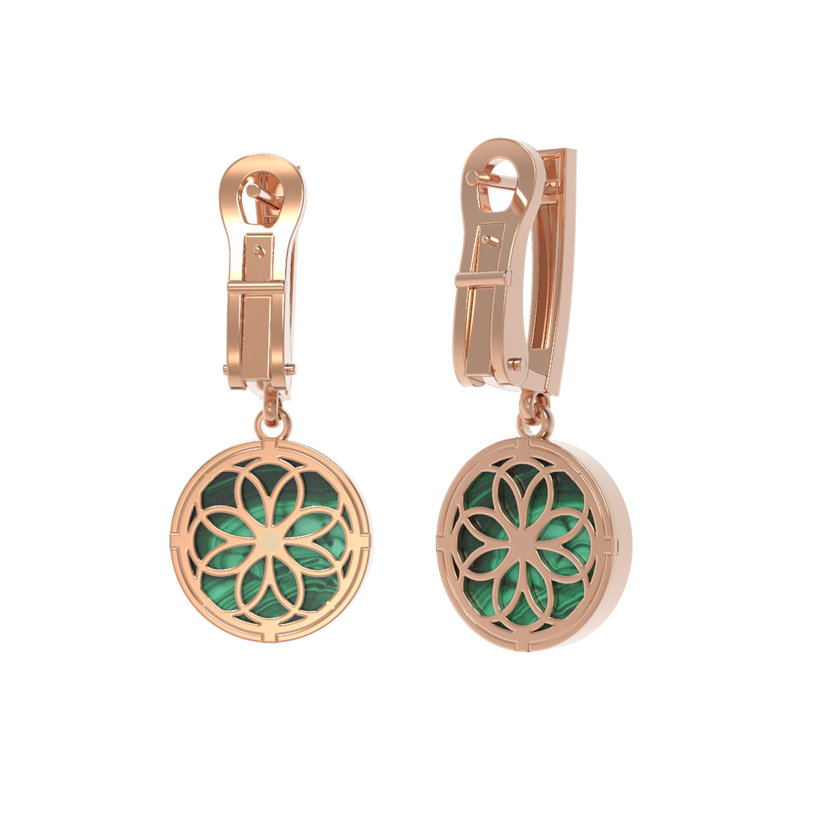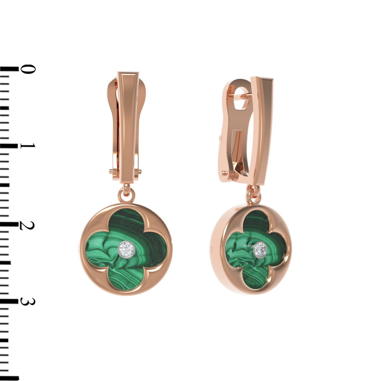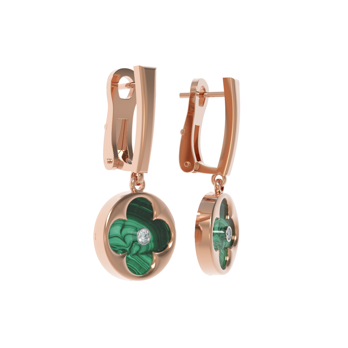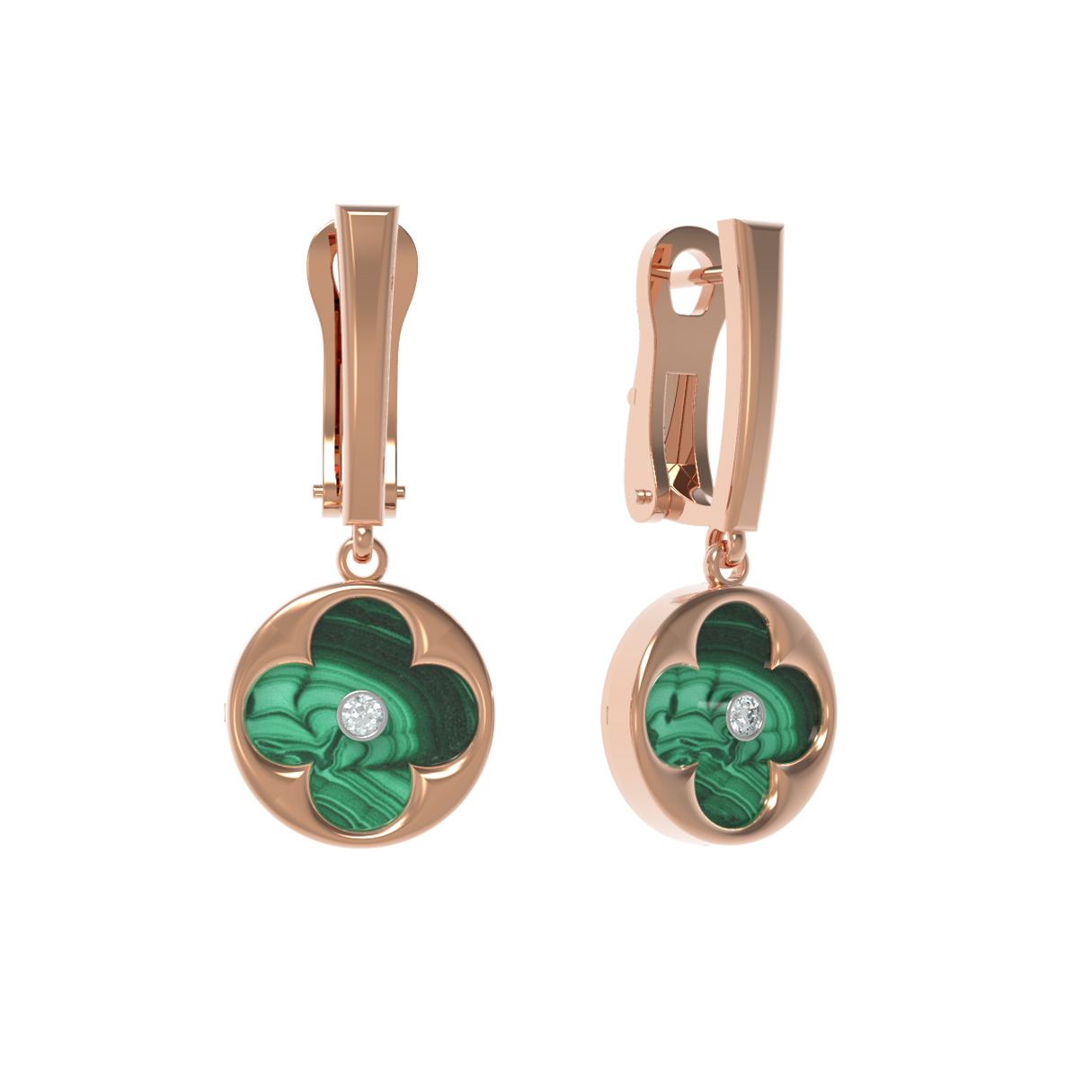 Серьги из золота c бриллиантами и малахитом