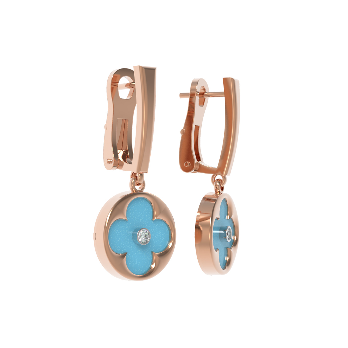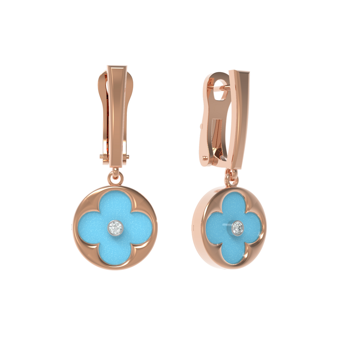 Серьги из золота c бриллиантами и бирюзой