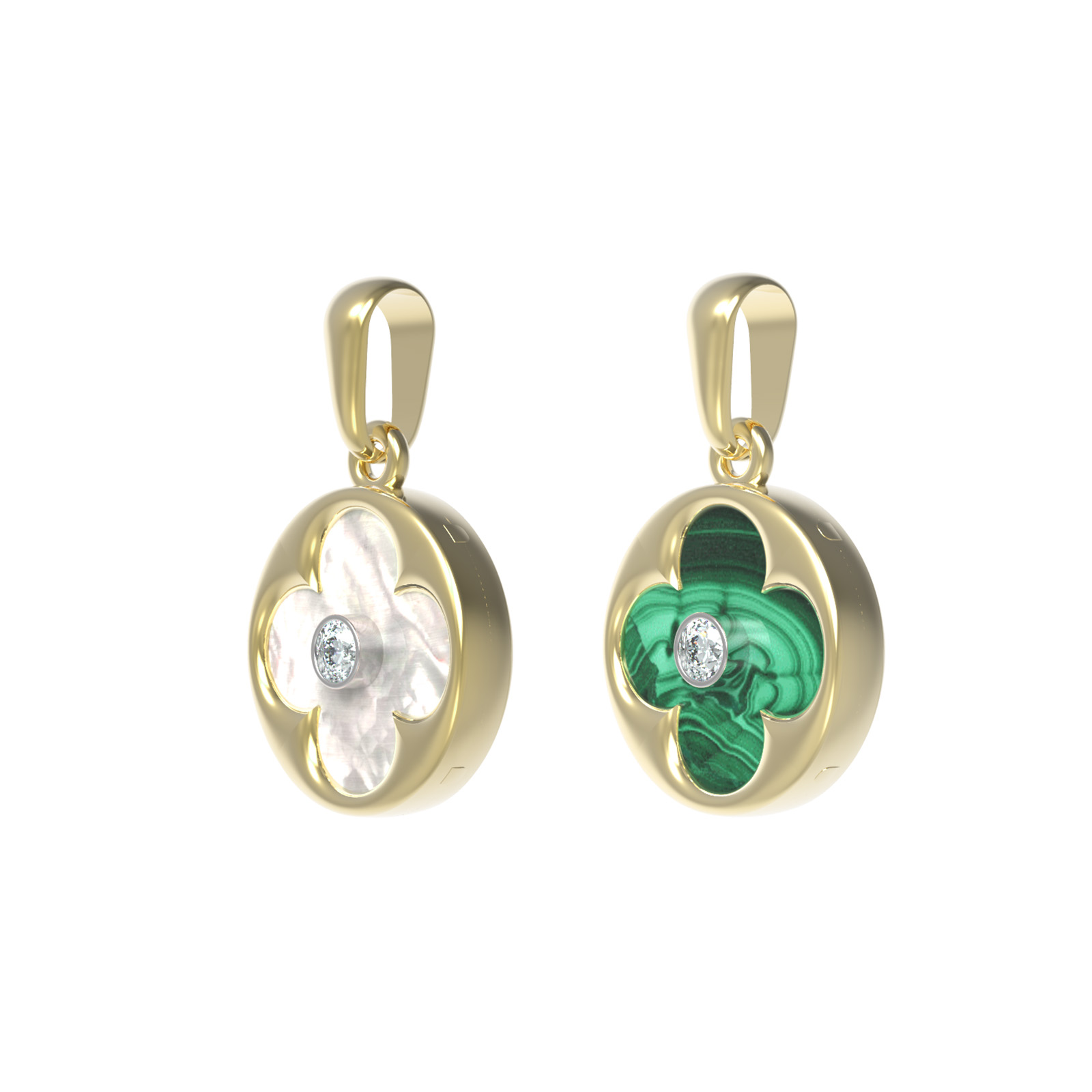 Подвеска из лимонного золота c бриллиантами, малахитом и перламутром