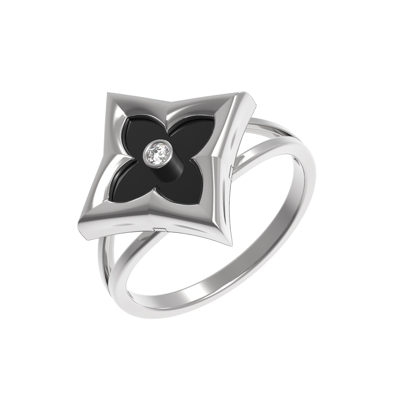 Кольцо из белого золота c бриллиантами и ониксом