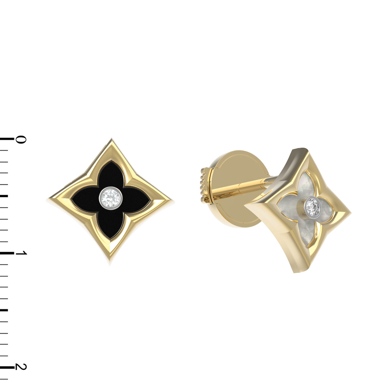 Серьги из лимонного золота c бриллиантами, ониксом и перламутром