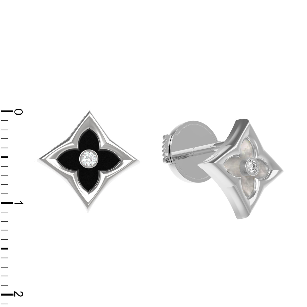 Серьги из белого золота c бриллиантами, ониксом и перламутром