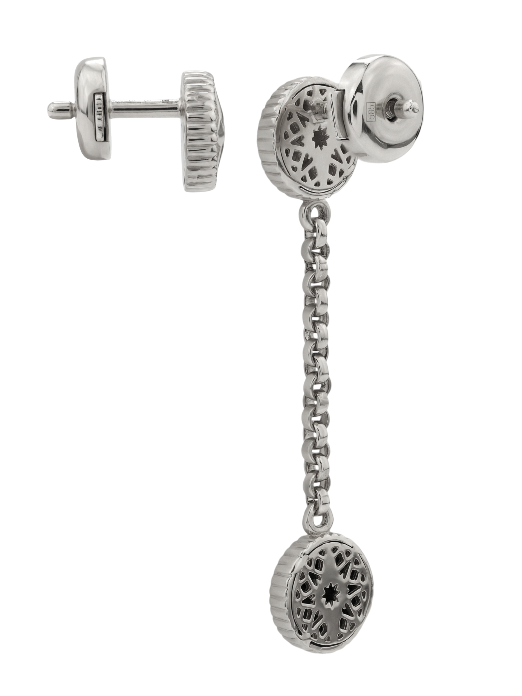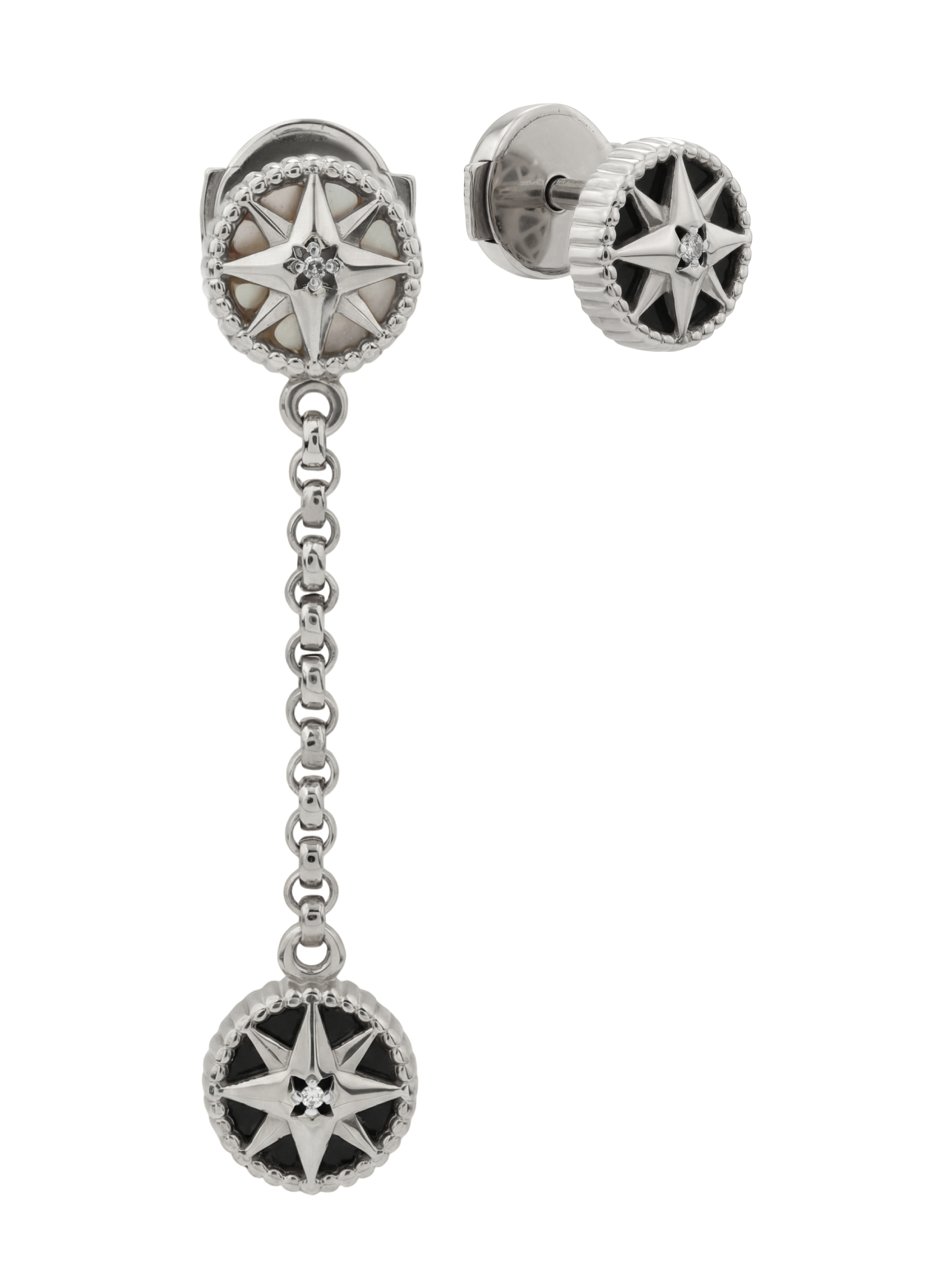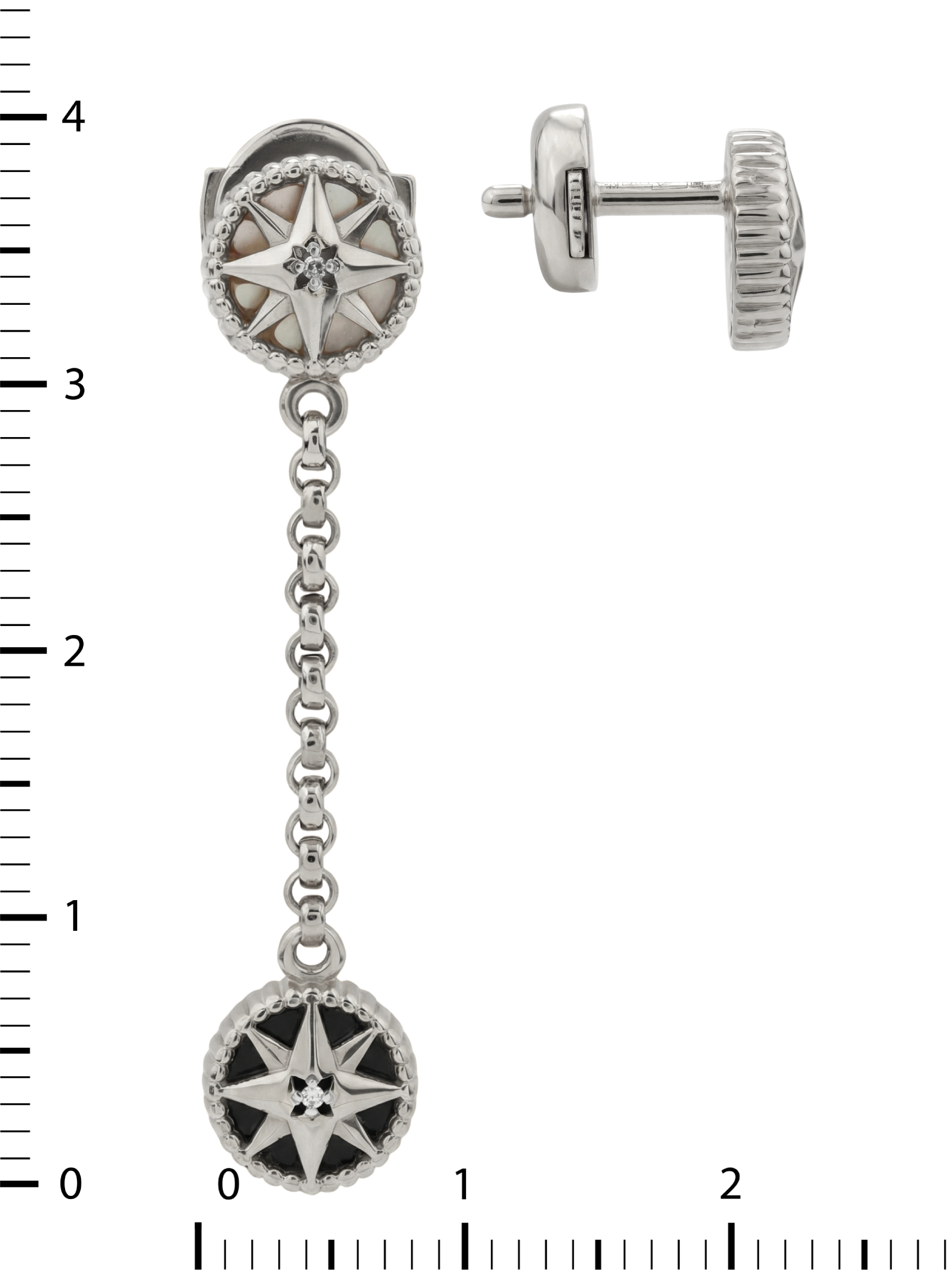 Серьги из белого золота c бриллиантами, ониксом и перламутром