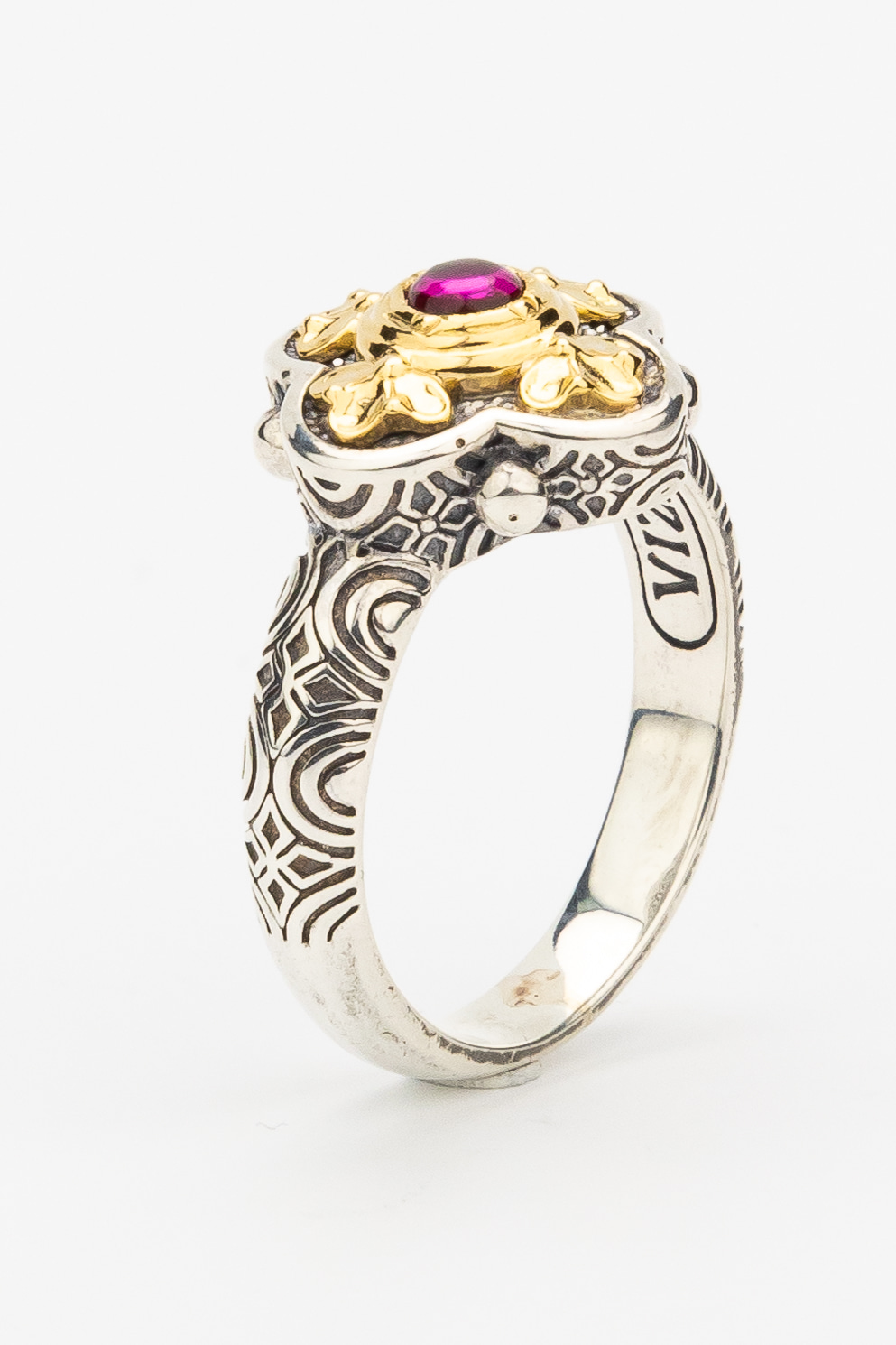 Кольцо из серебра и золота c рубином и рубином
