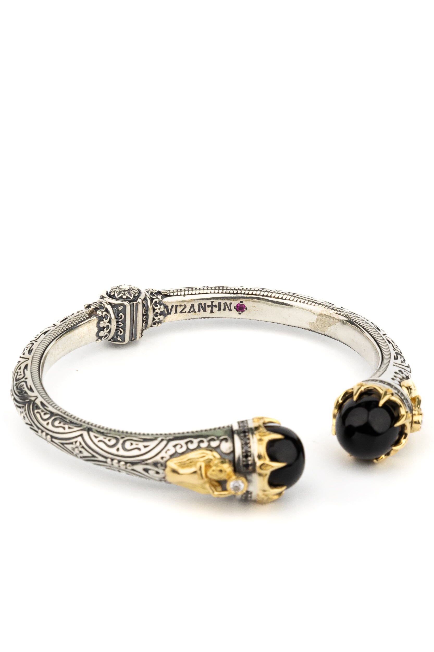 Браслет из серебра и золота c бриллиантами, ониксом и рубином