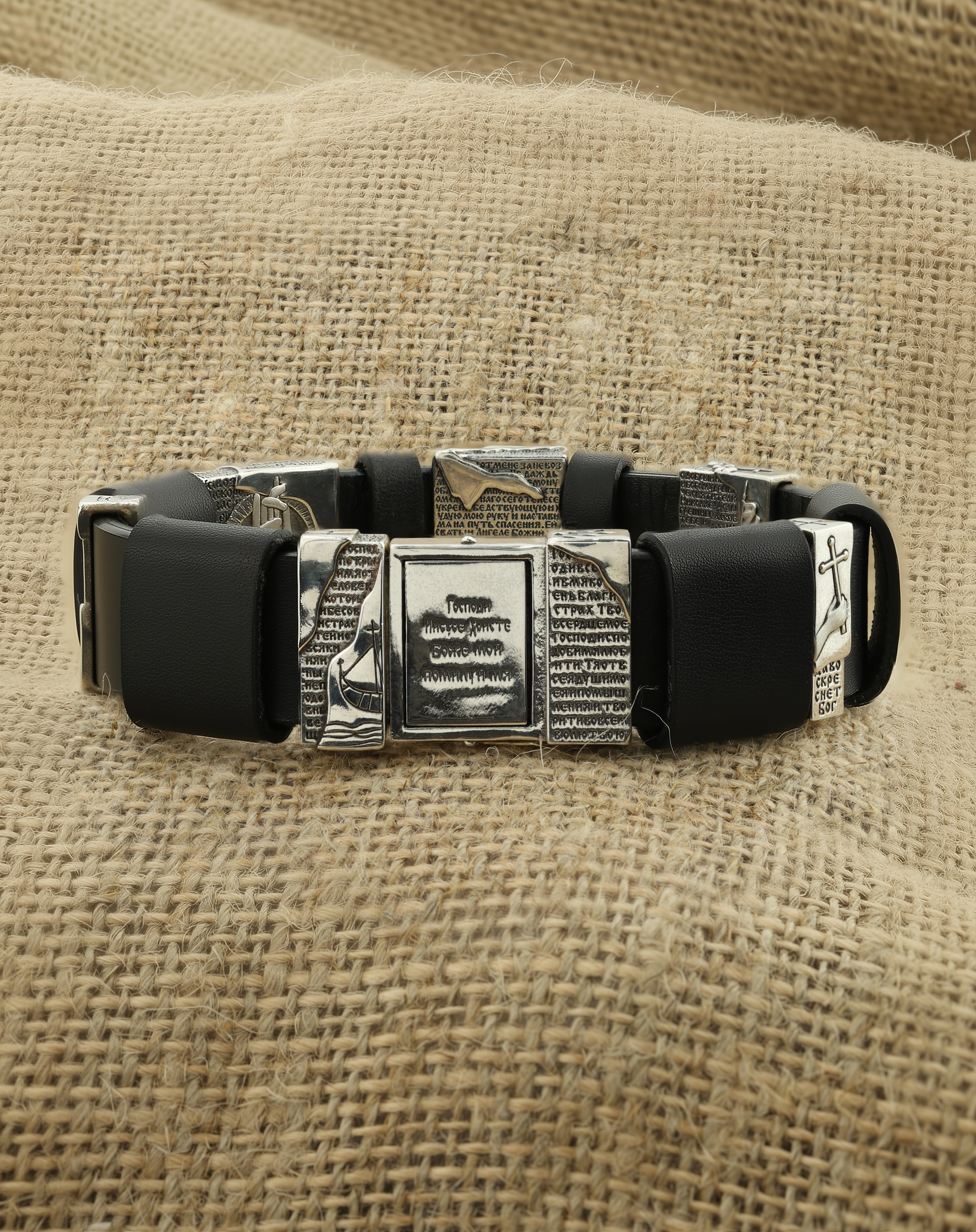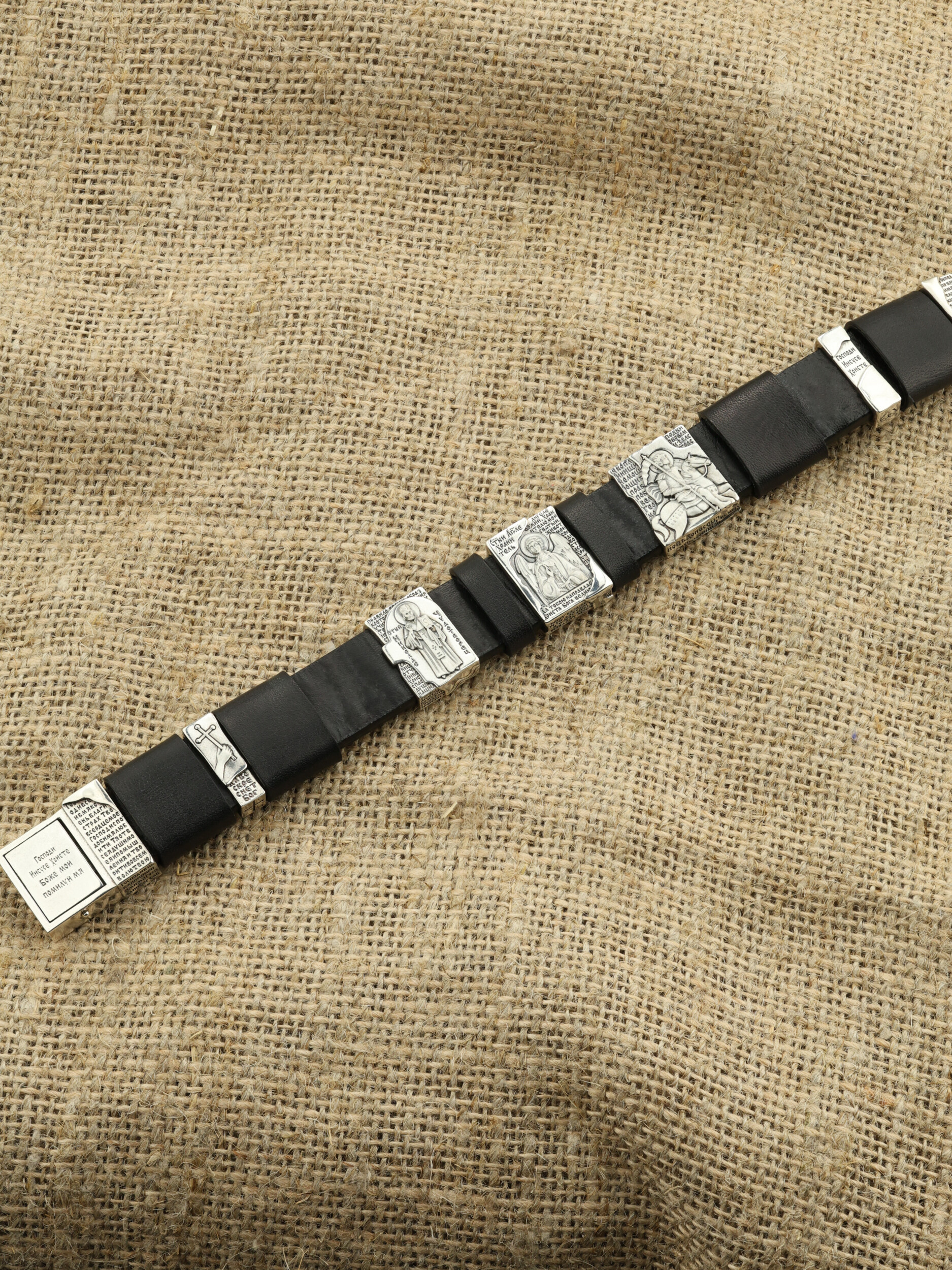 Браслет из серебра c кожаным шнурком
