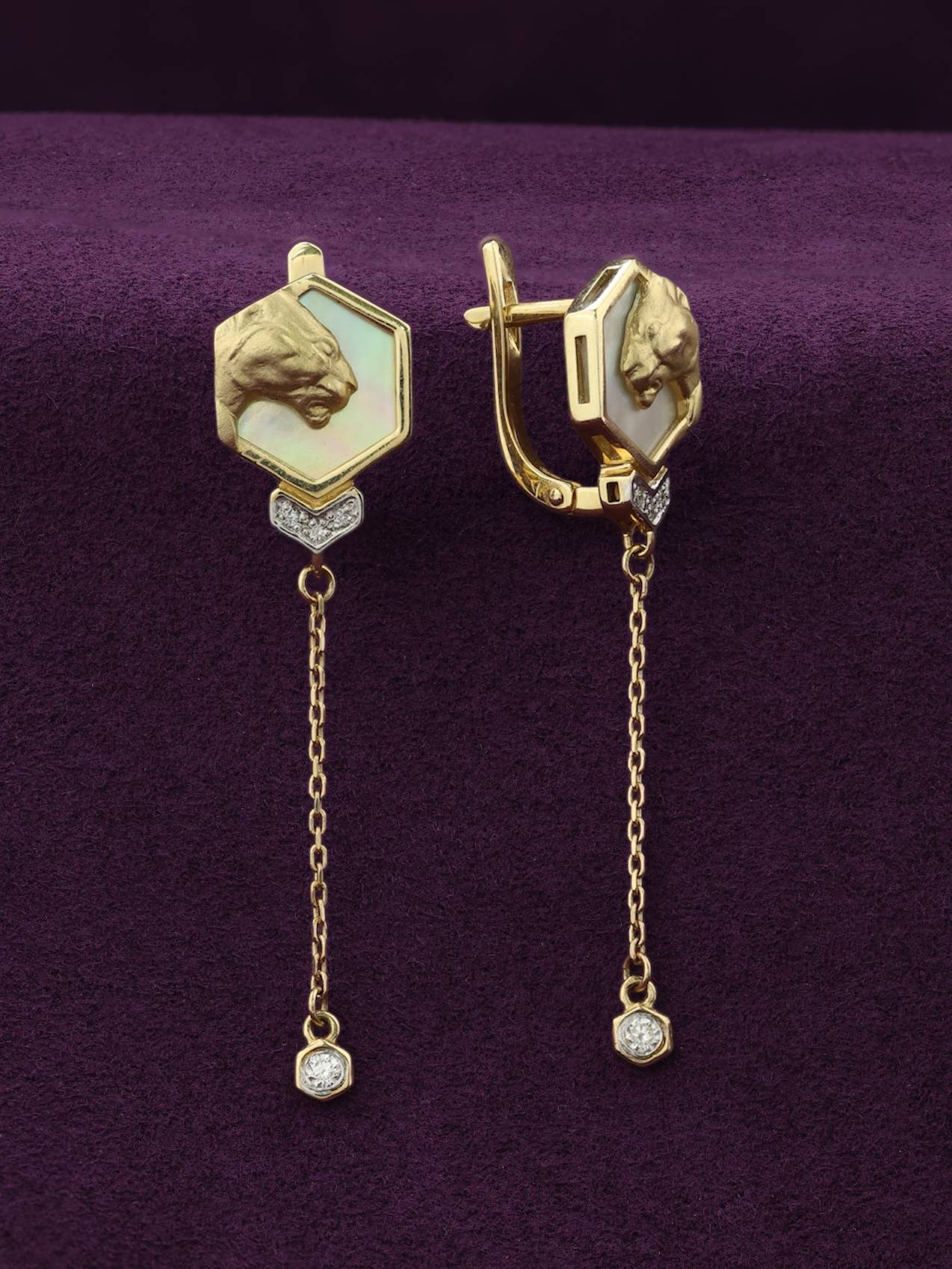Серьги из лимонного золота c бриллиантами и перламутром