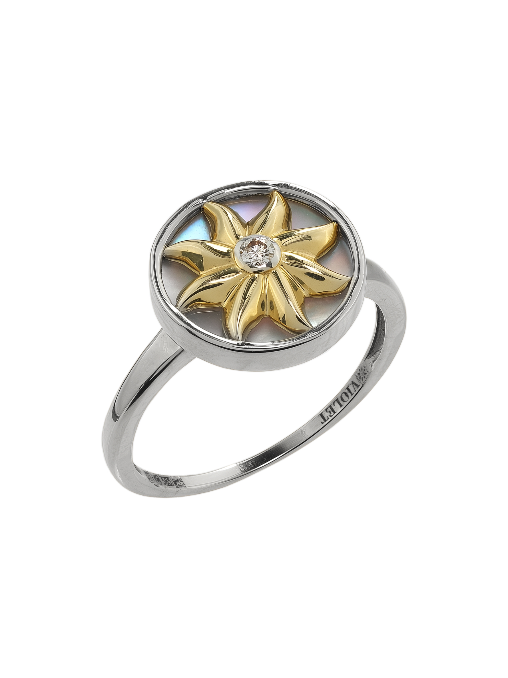 Кольцо из белого золота c бриллиантами и перламутром