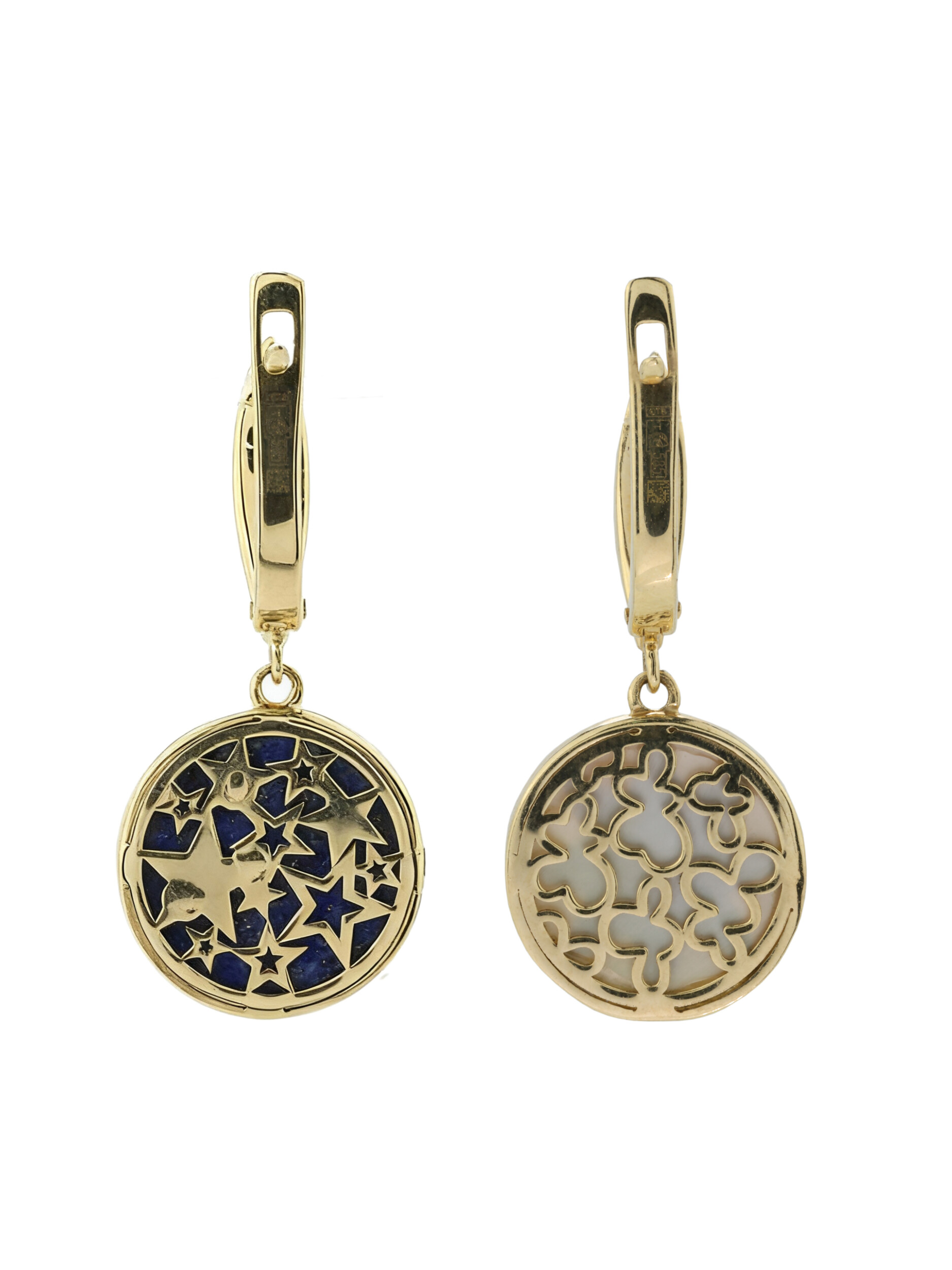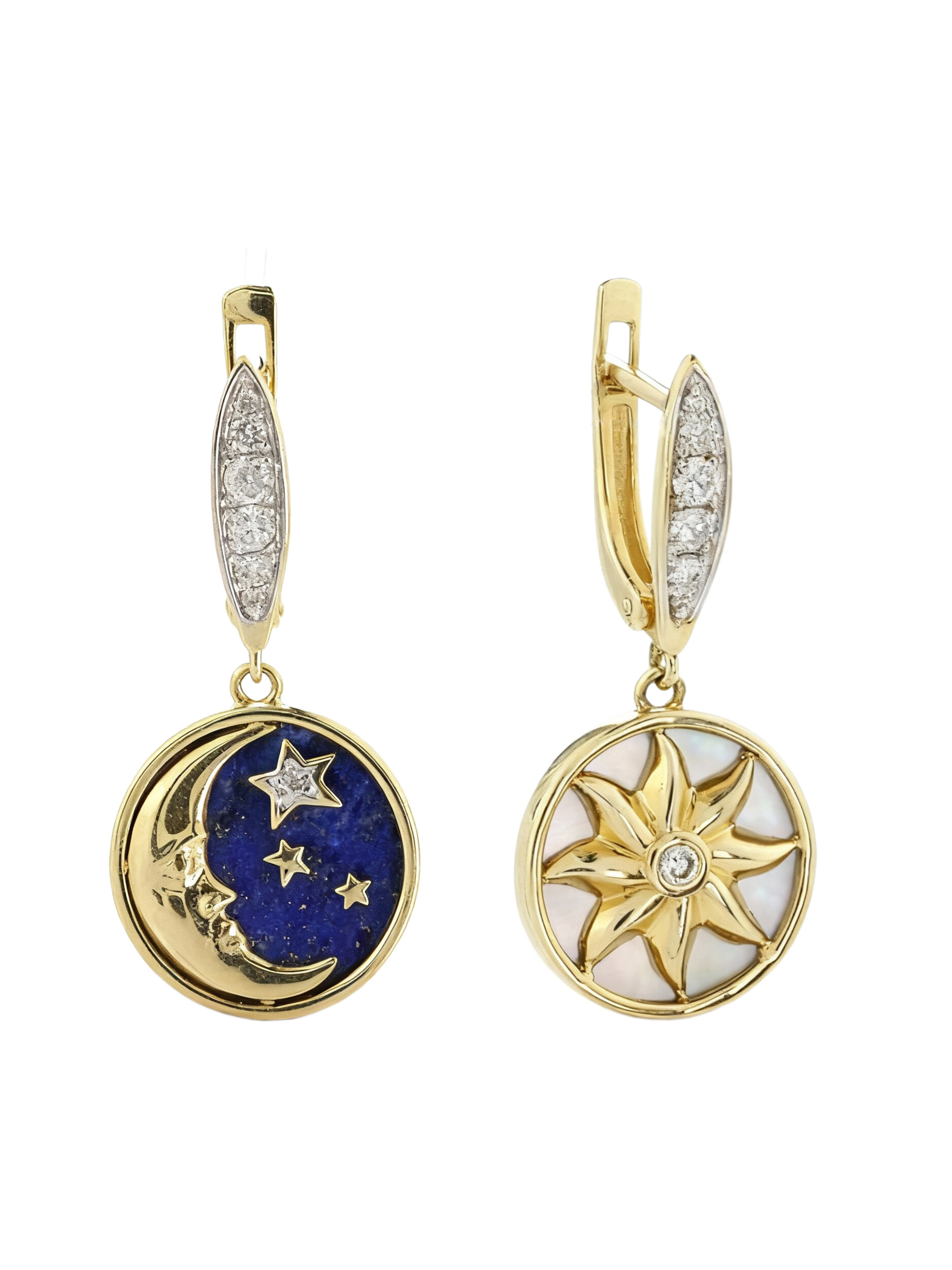 Серьги из лимонного золота c бриллиантами, лазуритом и перламутром