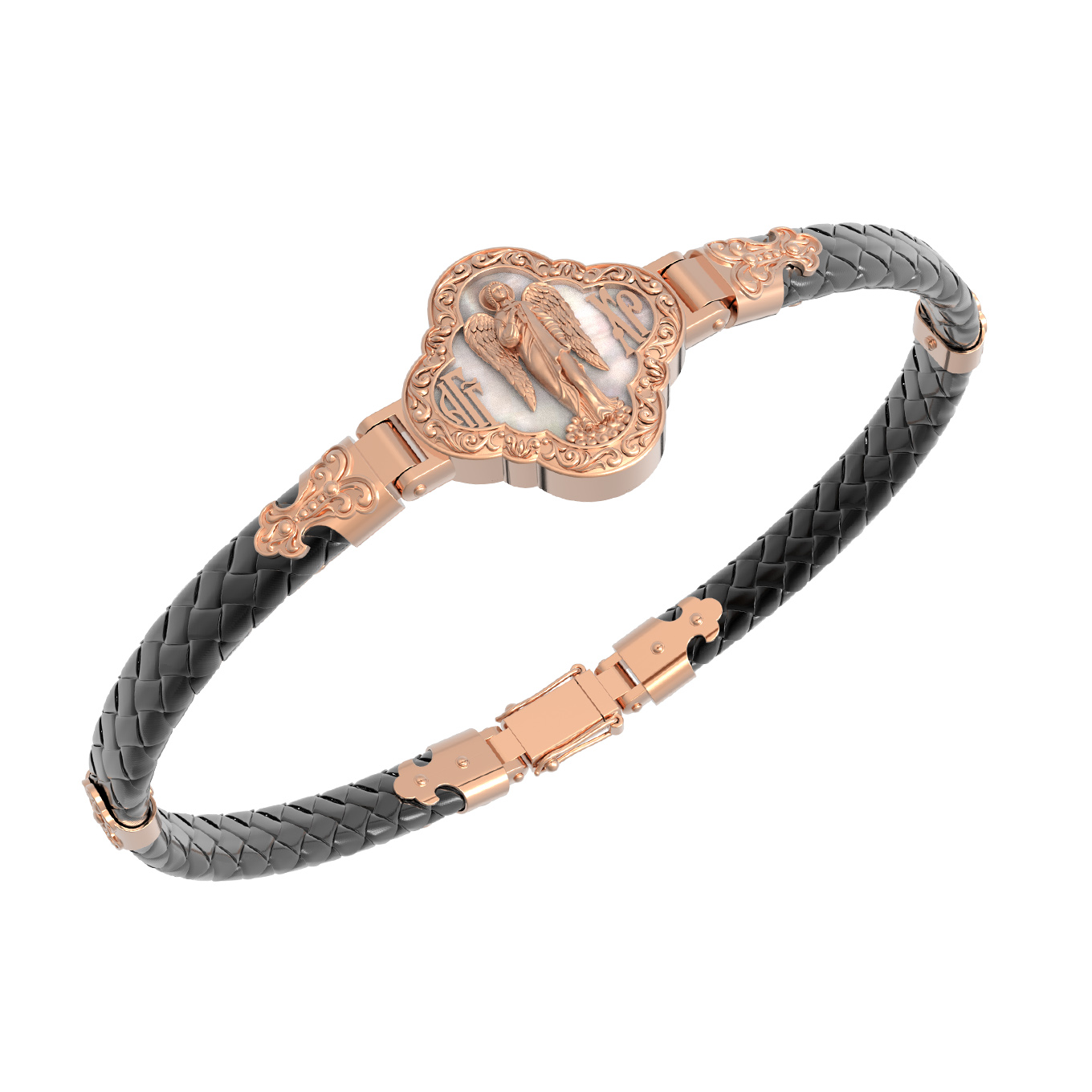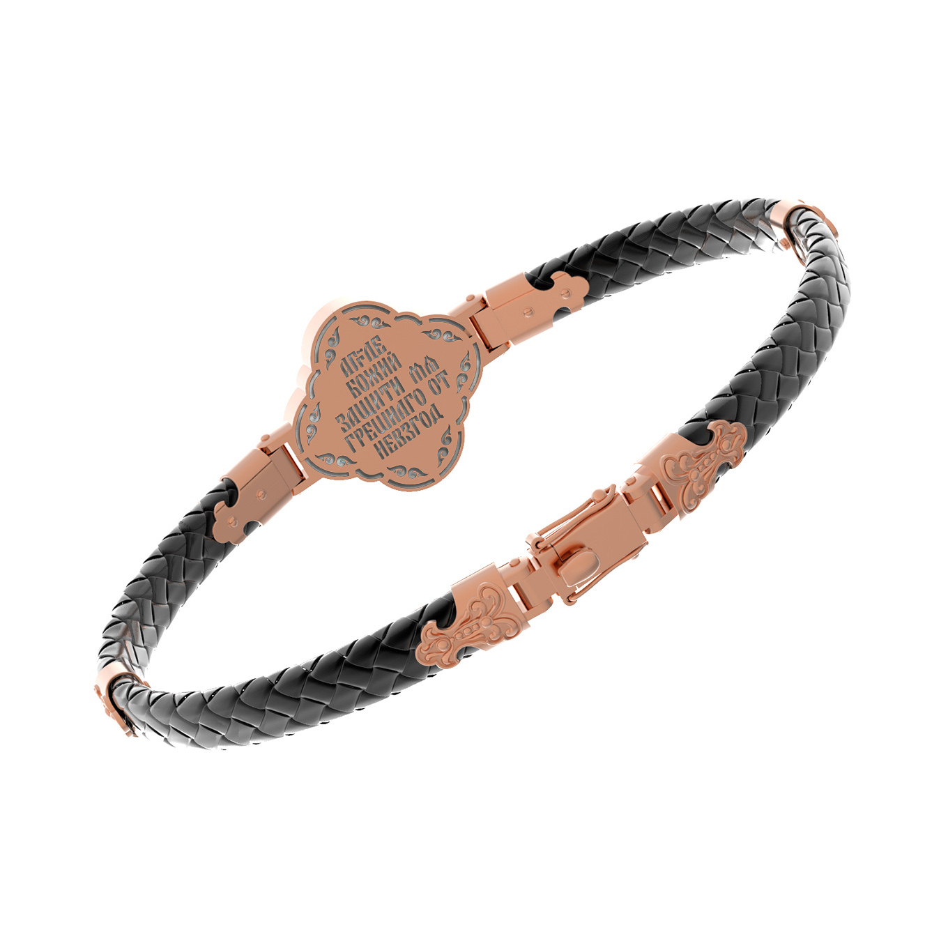 На лицевой стороне основного звена изображён Святой Ангел-Хранитель. Ангел Хранитель — это Ангел приставляемый Богом к человеку при крещении для охраны и помощи в добрых делах. Он невидимо находится при человеке на протяжении всей его жизни, если человек сохраняет в себе любовь к Богу и истинную веру перед Ним. Ангел-Xранитель делают для нас все, что служит к истинному нашему благу и спасению. Невидимо пребывая при нас постоянно, он, руководствуя нас ко спасению, не только по нашему желанию таинственно наставляет нас на все доброе и полезное, не только возносит наши молитвы к Богу, но еще и сам от себя охраняют и защищают нас от врагов видимых и невидимых и ходатайствует за нас пред Богом. Ангел-Хранитель так любит нас, как никто на земле любить не может. Ангел-Хранитель — присный друг наш, незримый тихий собеседник, пресладостный утешитель. Одного лишь каждому из нас он желает — спасения души; к этому он направляет все свои заботы. И если видит нас также заботящимися о спасении, радуется, если же видит нас пребывающими в нерадении о душе своей, скорбит.