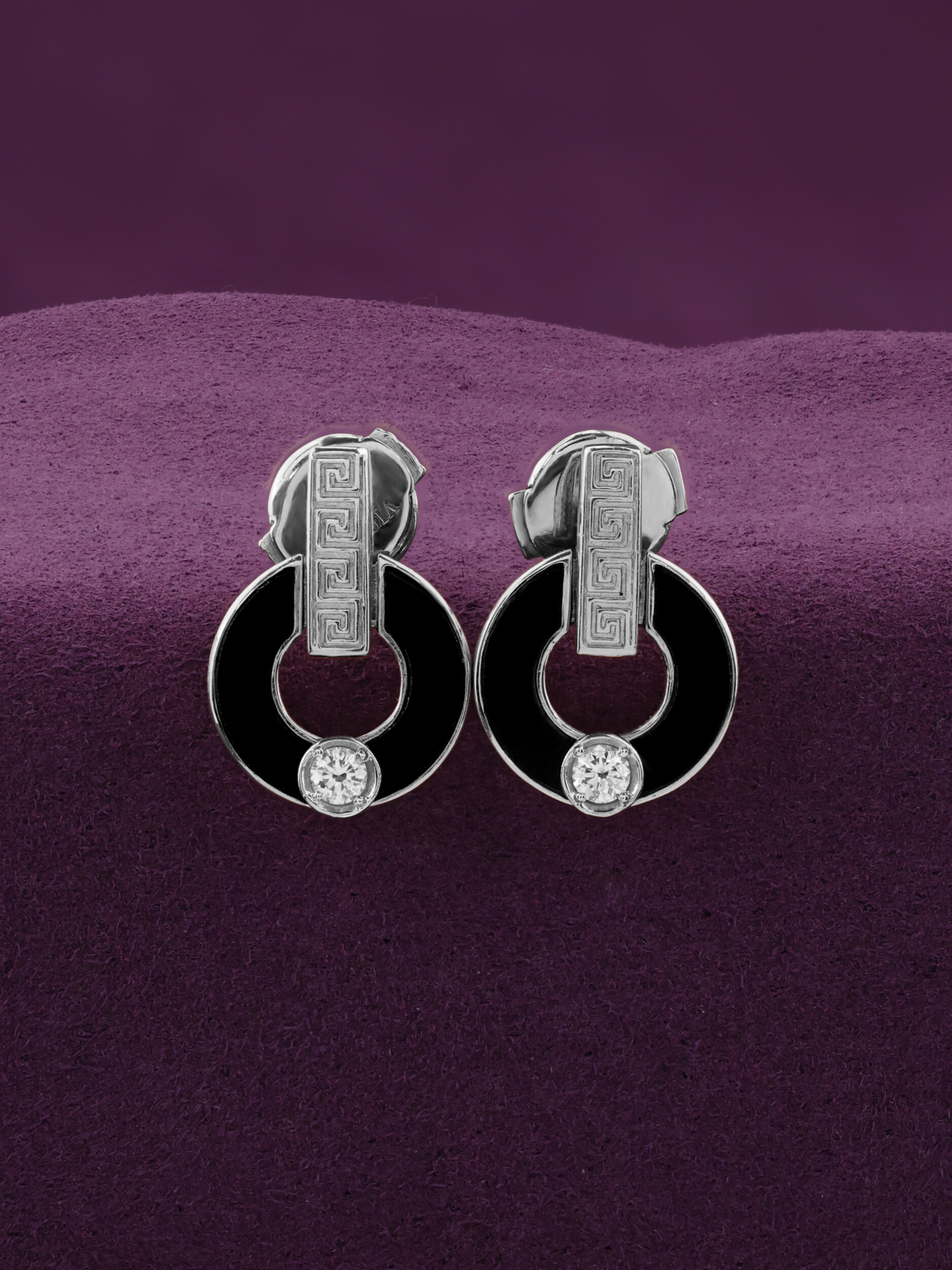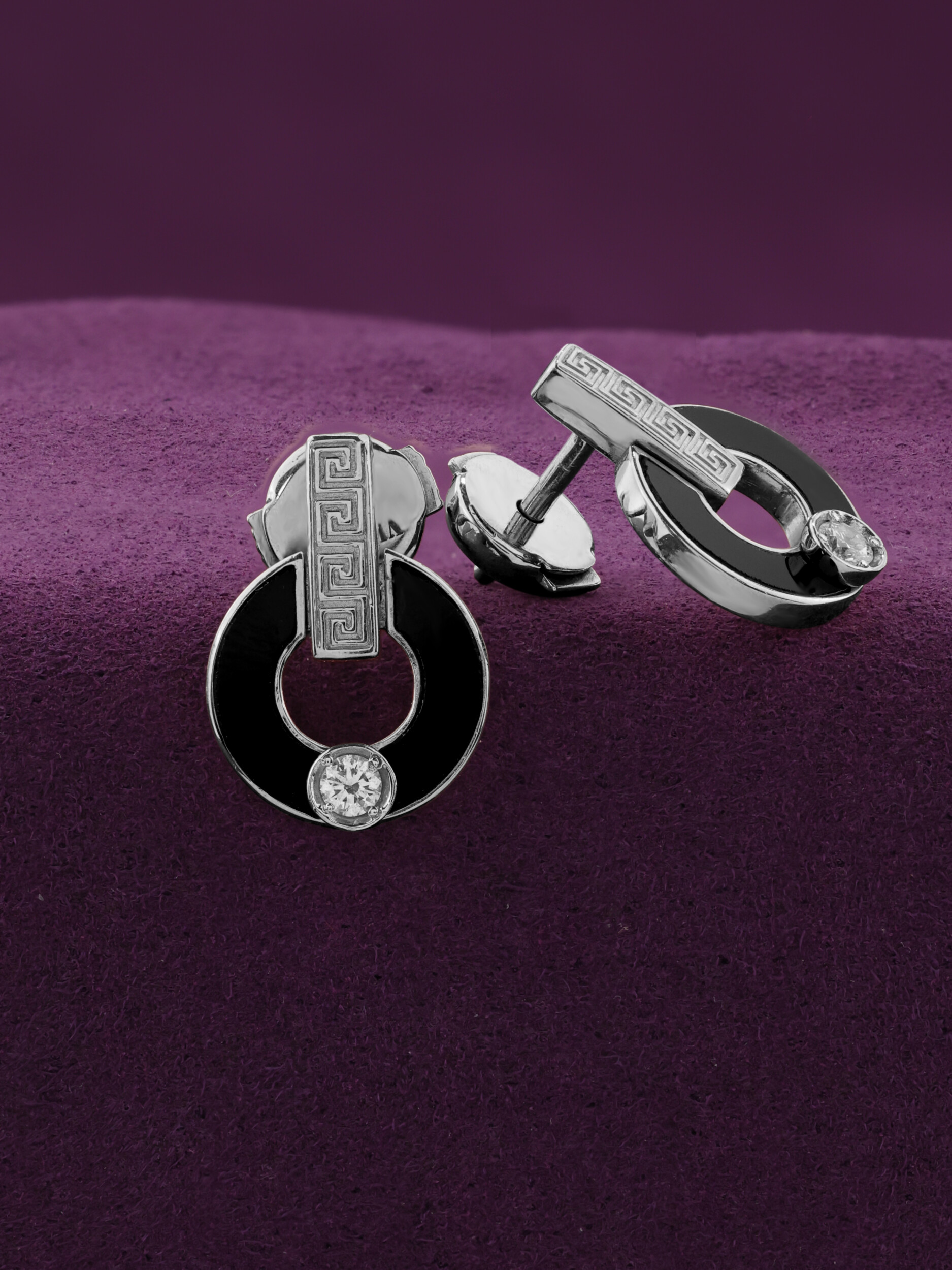 Серьги из белого золота c бриллиантами и ониксом