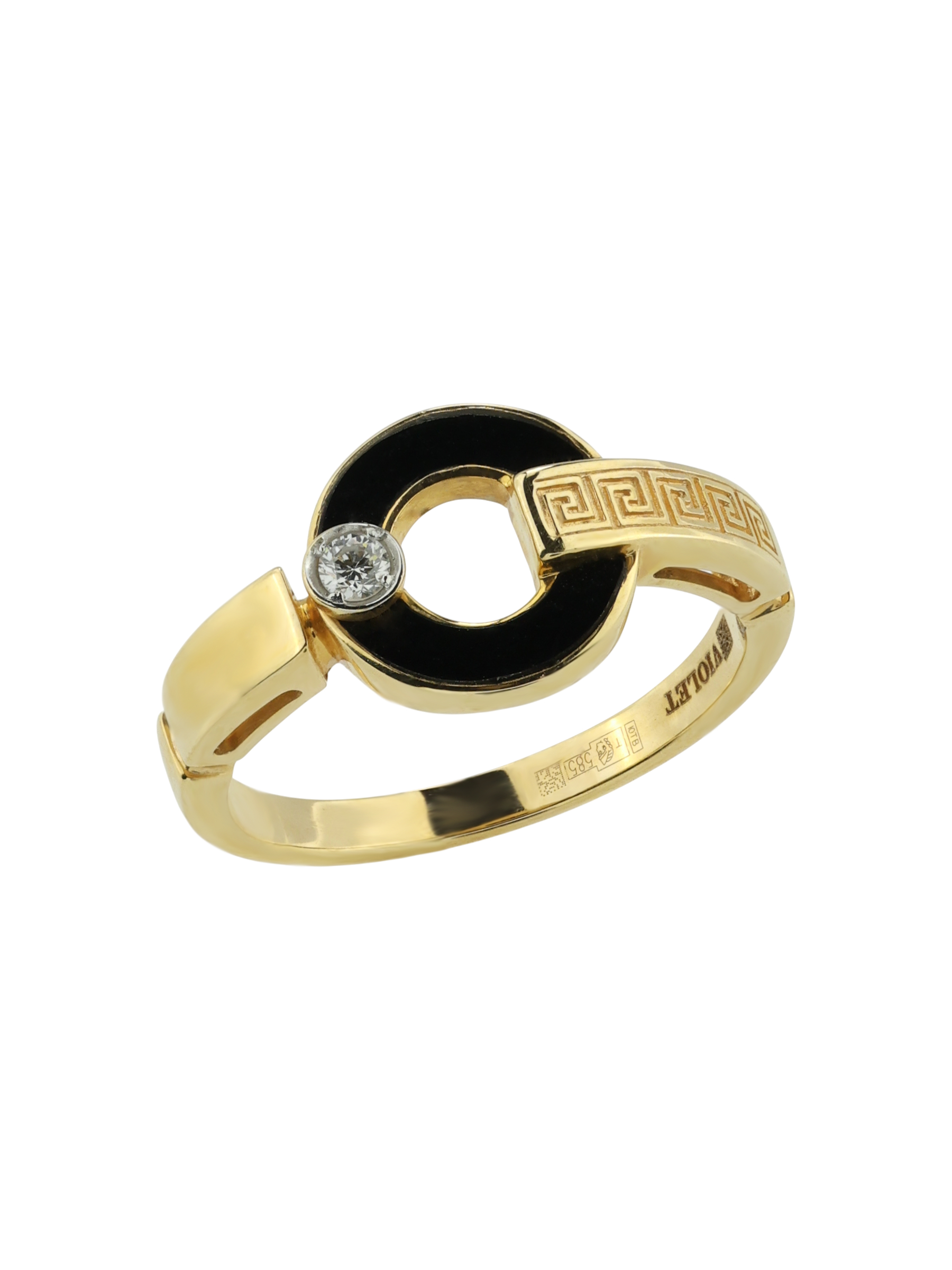 Кольцо из лимонного золота c бриллиантами и ониксом