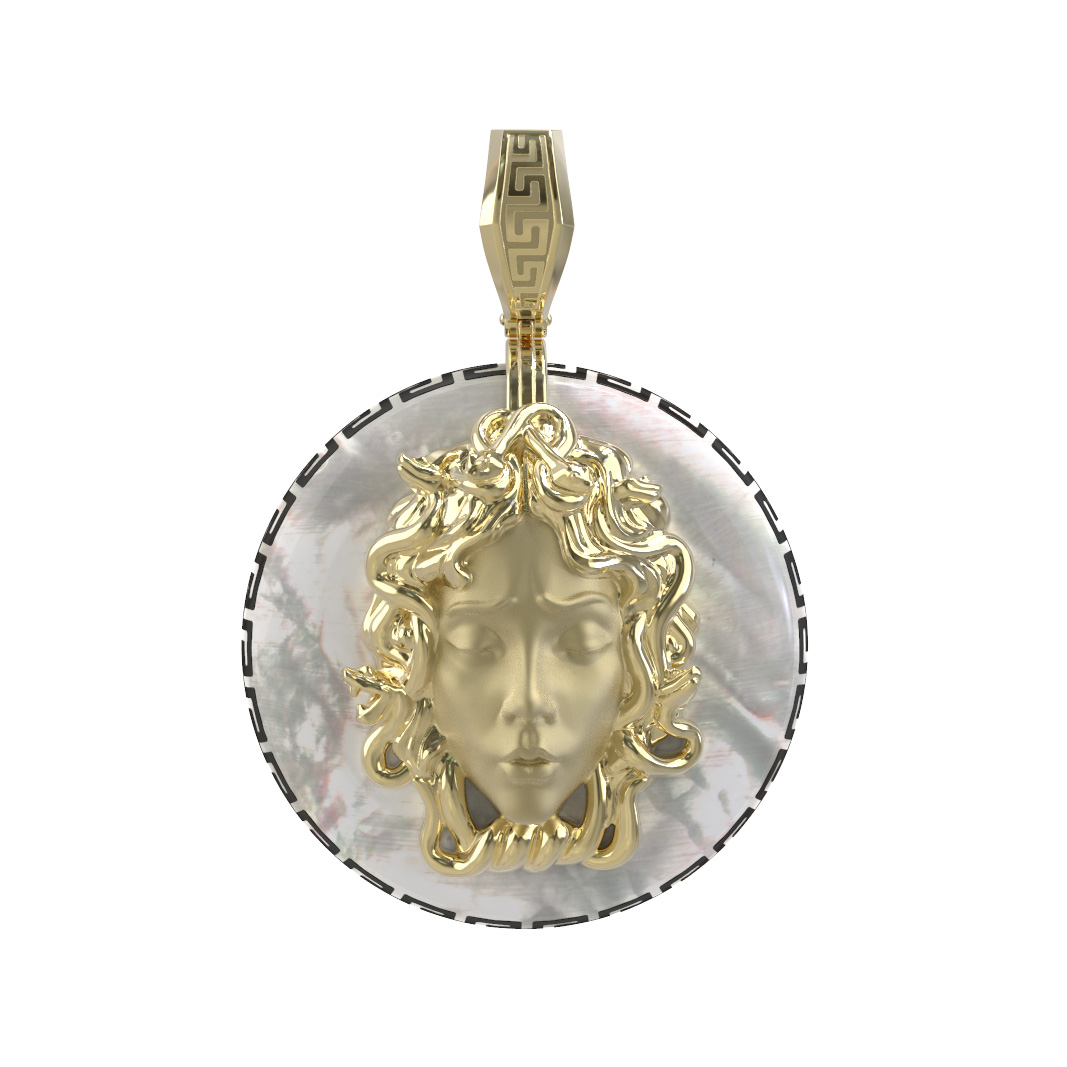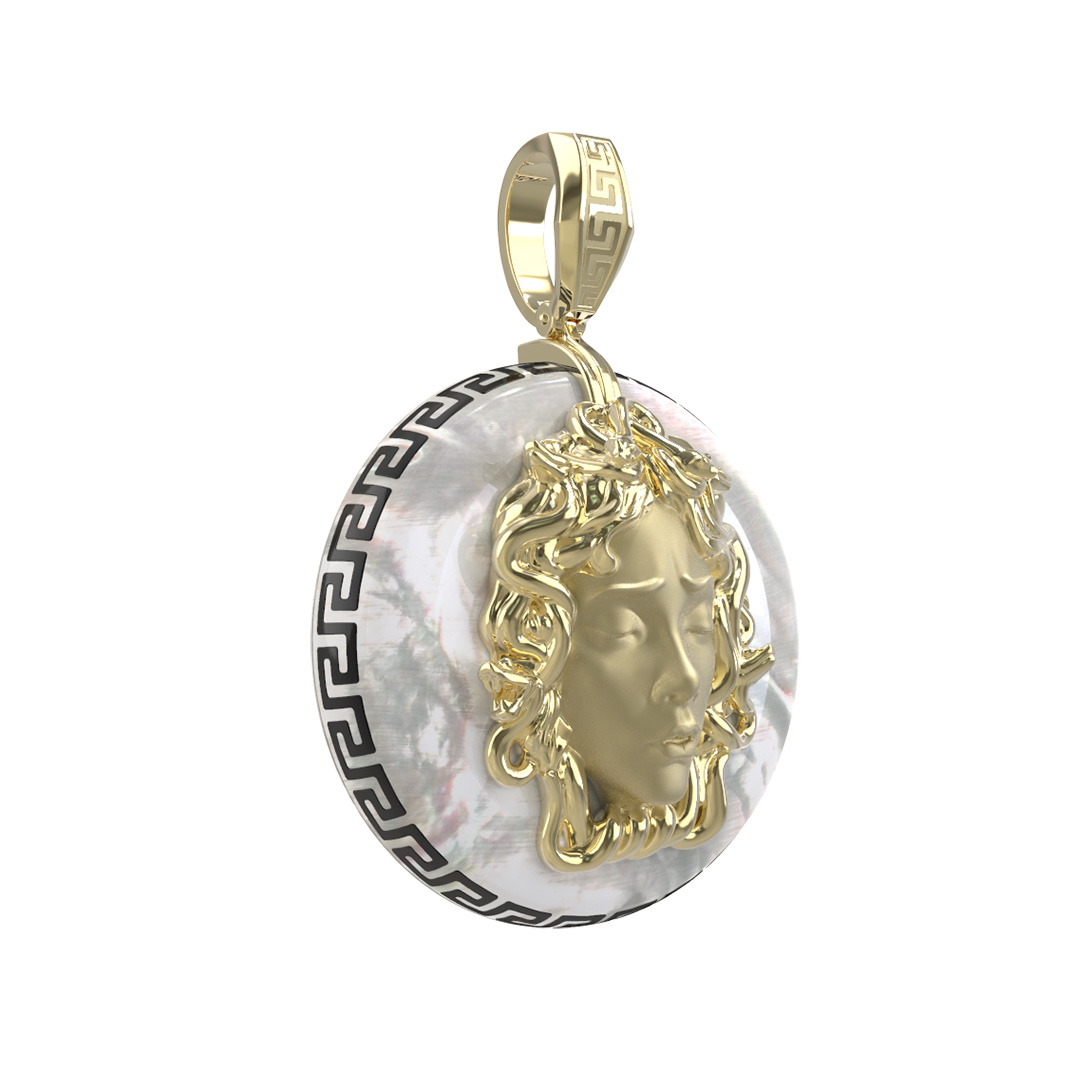 Подвеска из лимонного золота c эмаль и перламутром