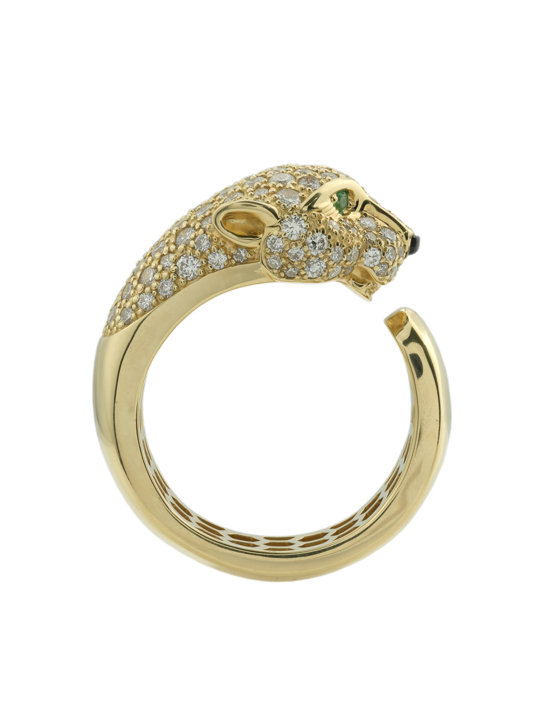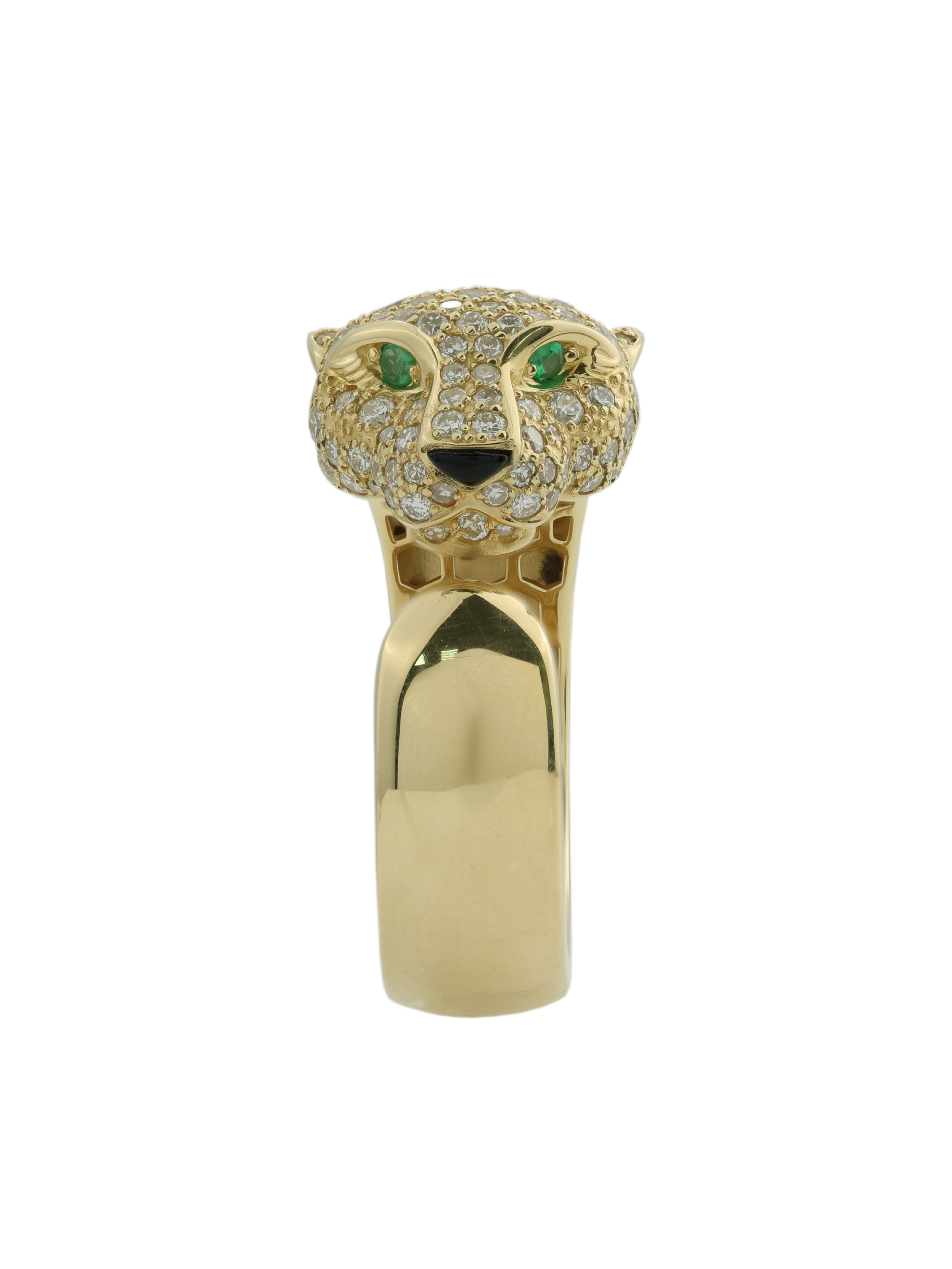 Кольцо из лимонного золота c бриллиантами, изумрудом и ониксом