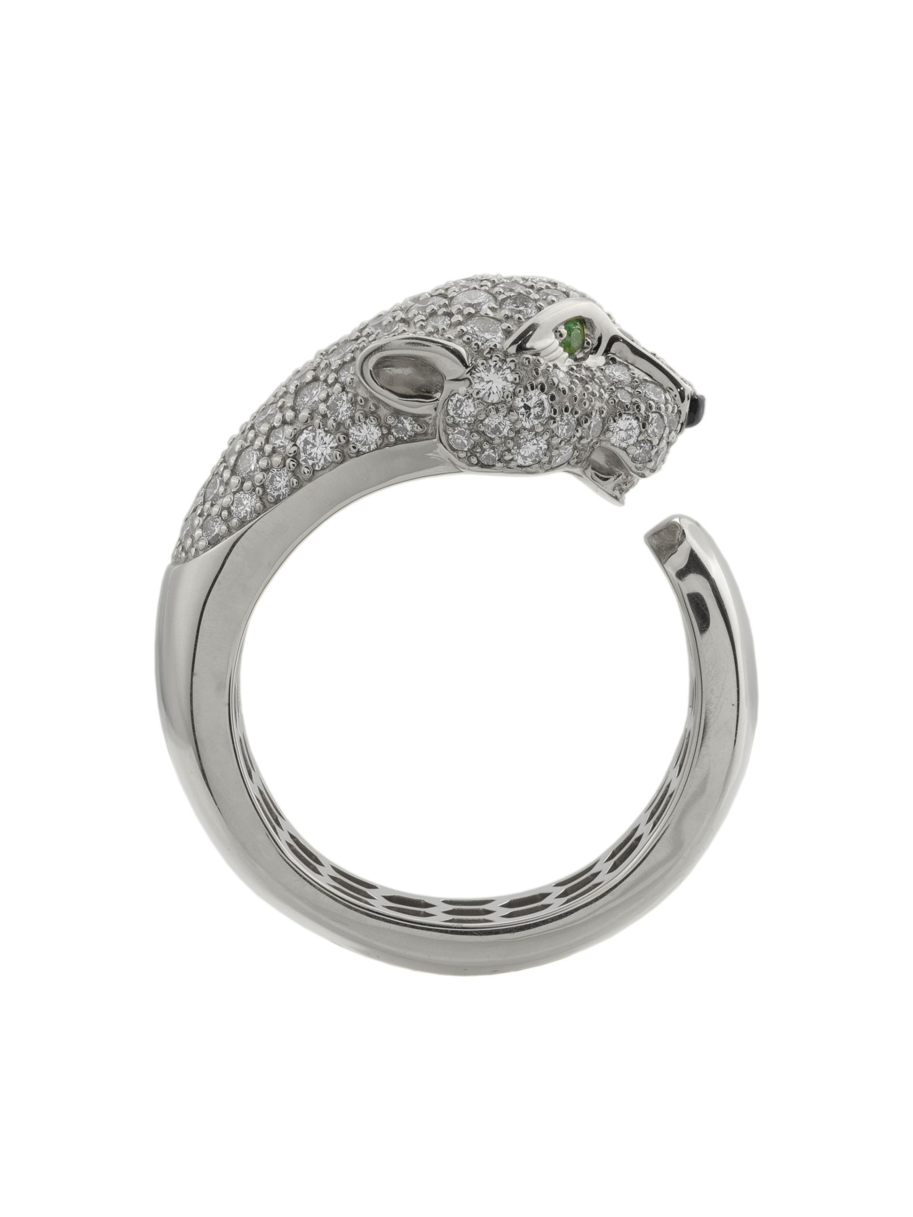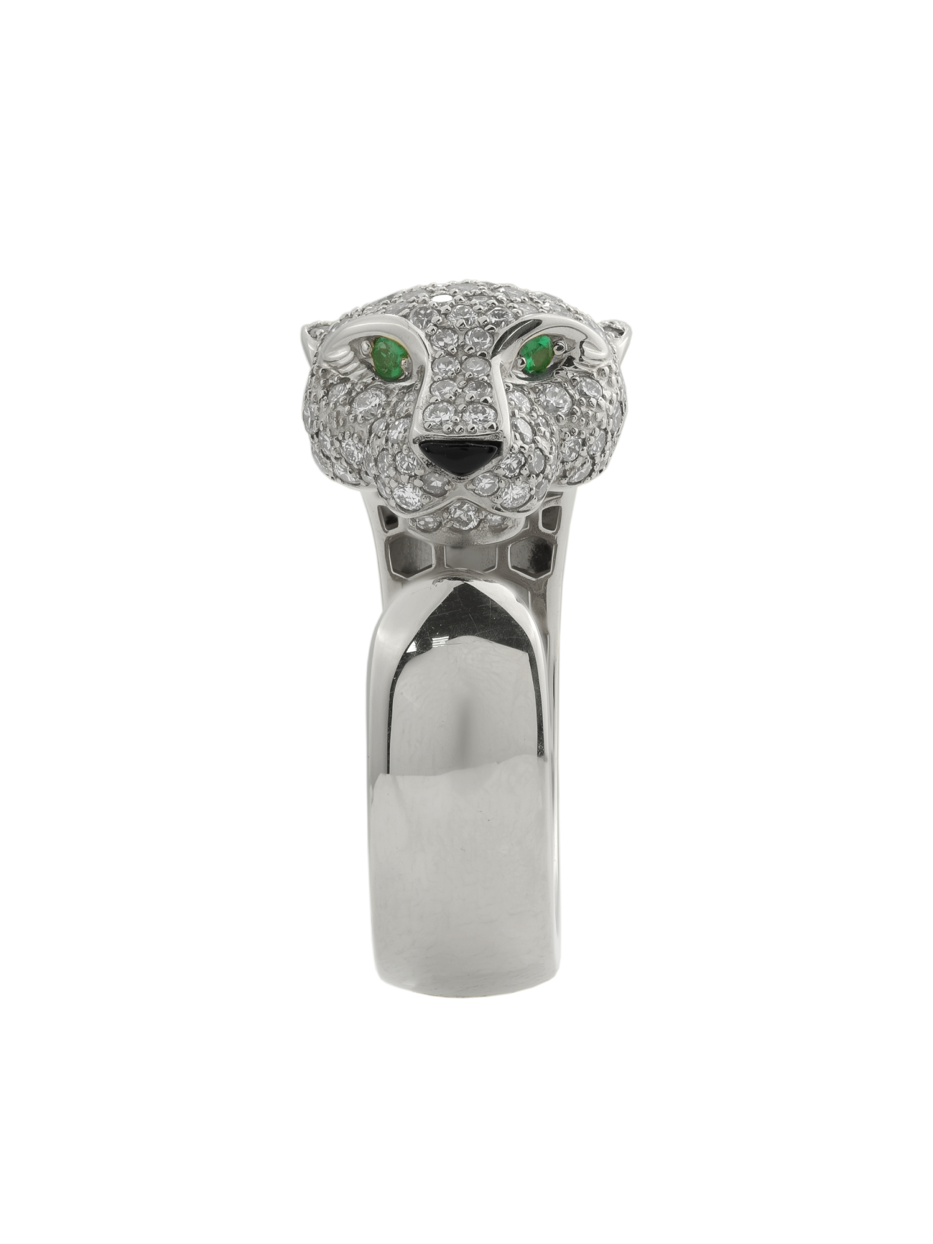 Кольцо из белого золота c бриллиантами, изумрудом и ониксом