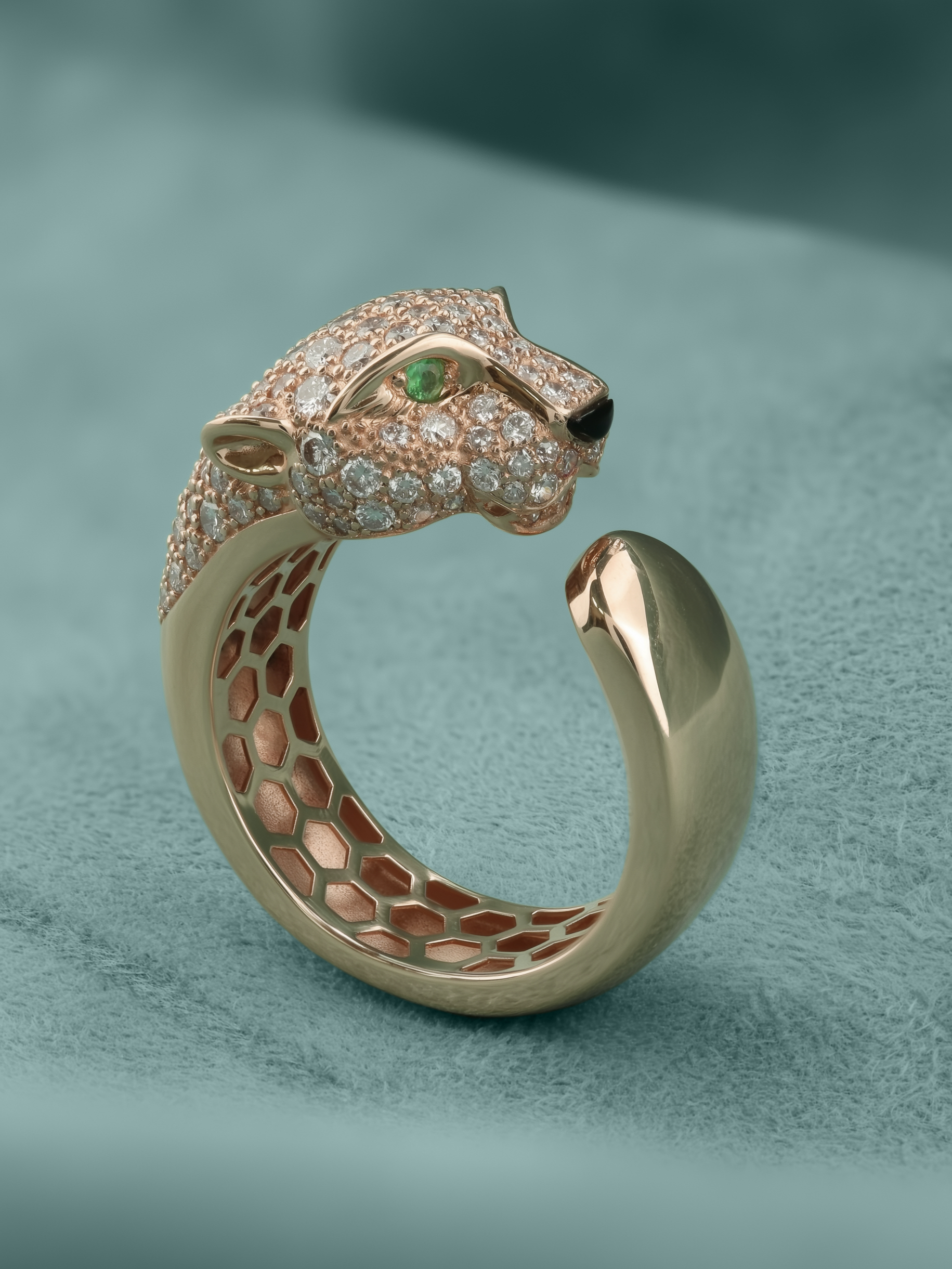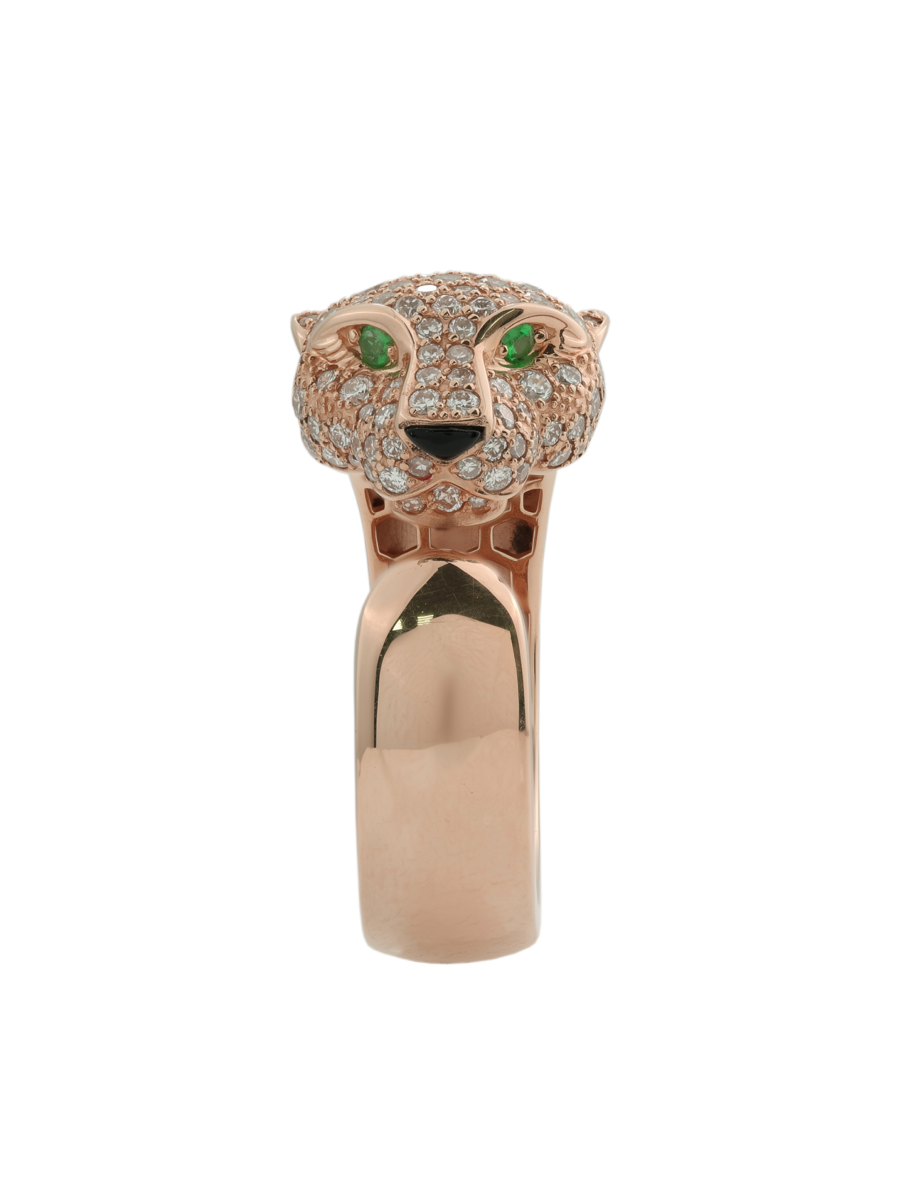 Кольцо из розового золота c бриллиантами, изумрудом и ониксом