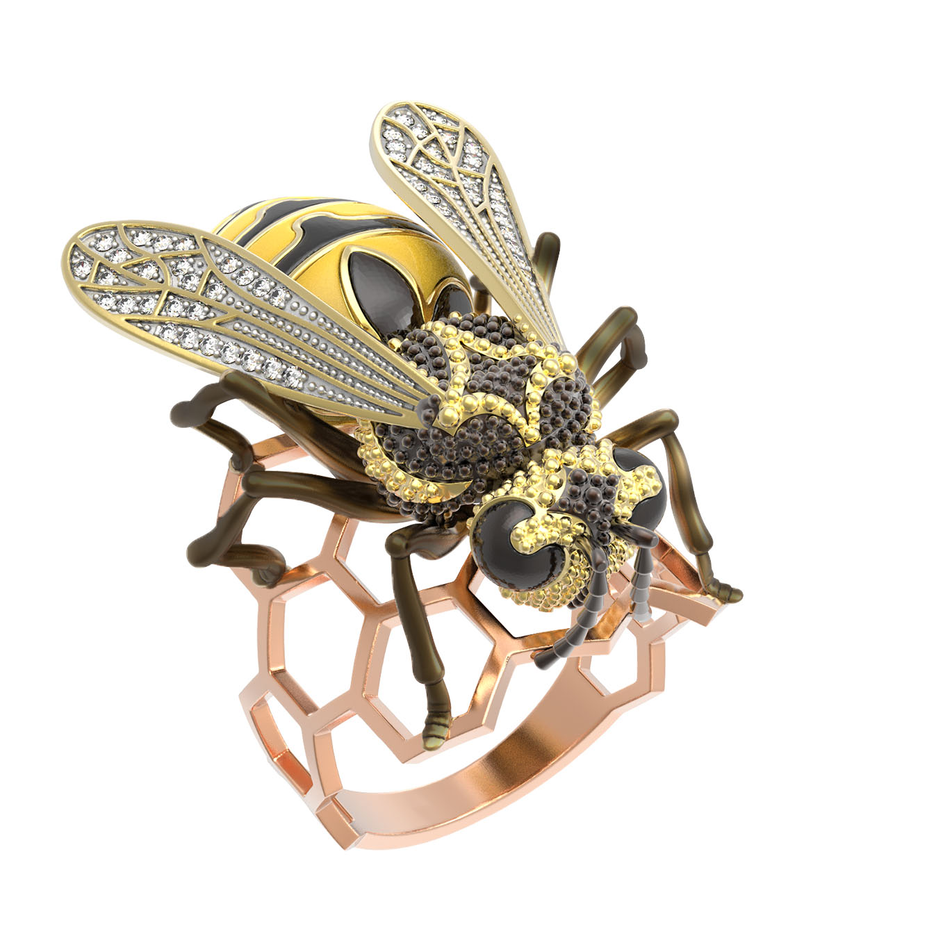 Кольцо из золота c эмаль и фианитом