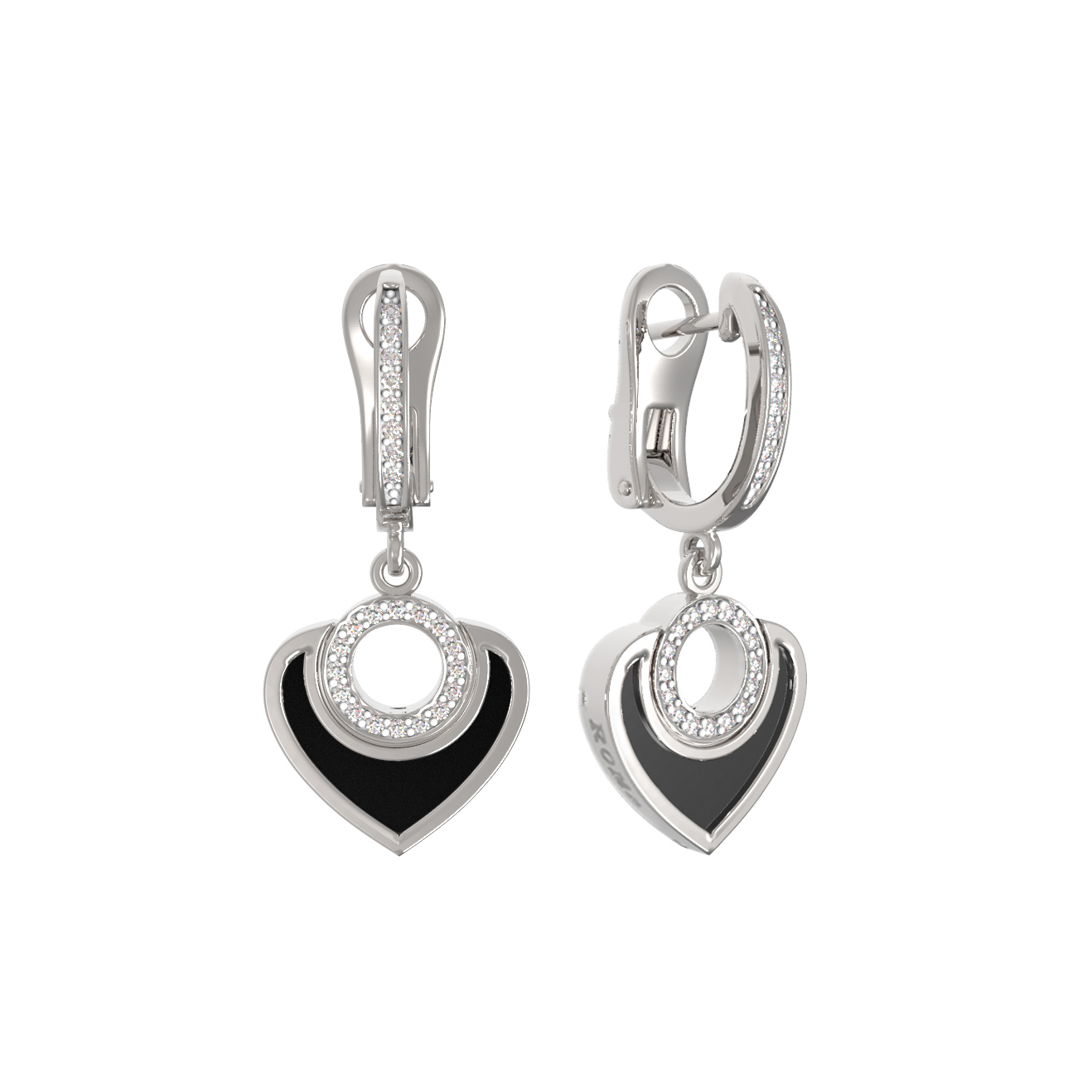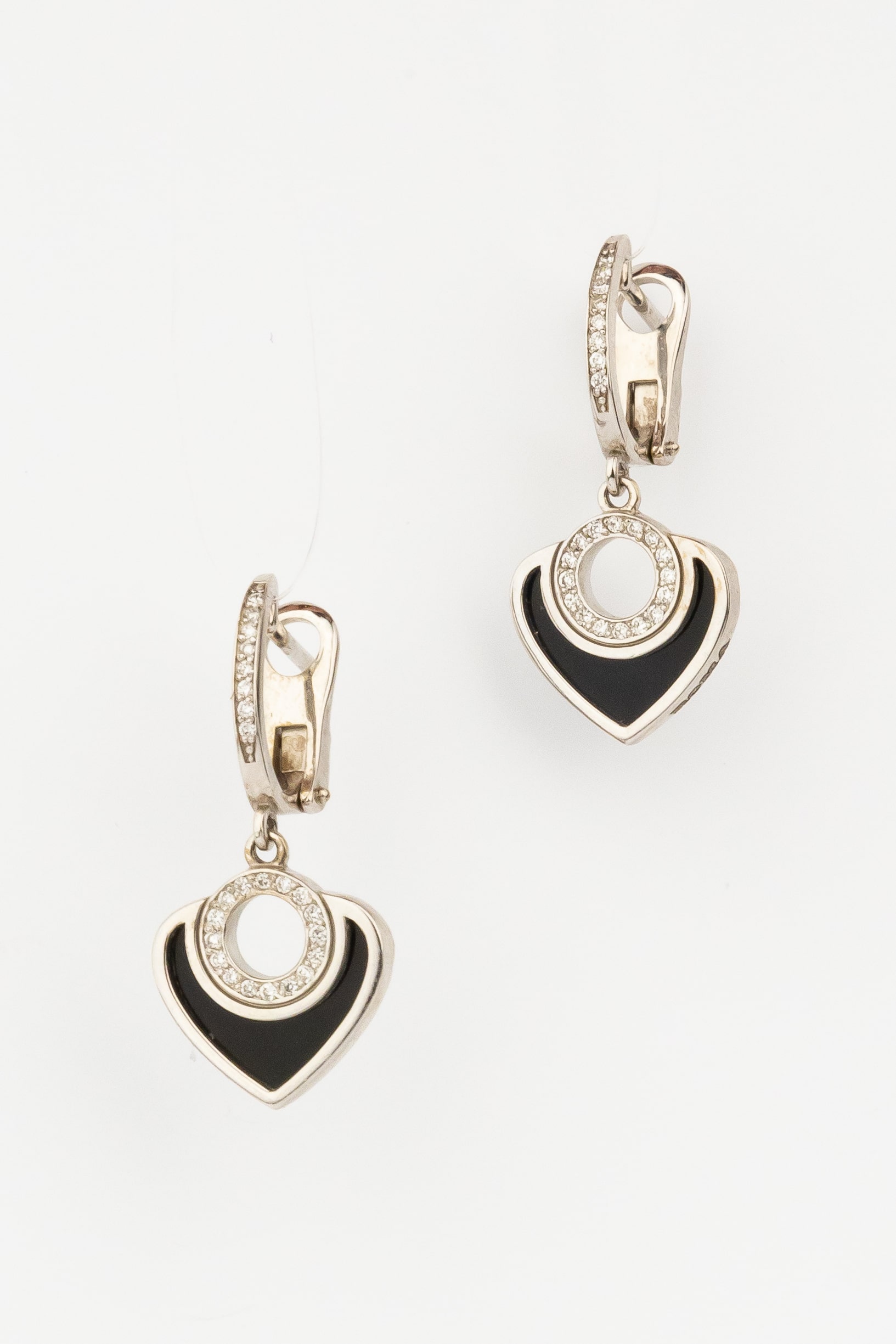 Серьги из белого золота c бриллиантами и ониксом