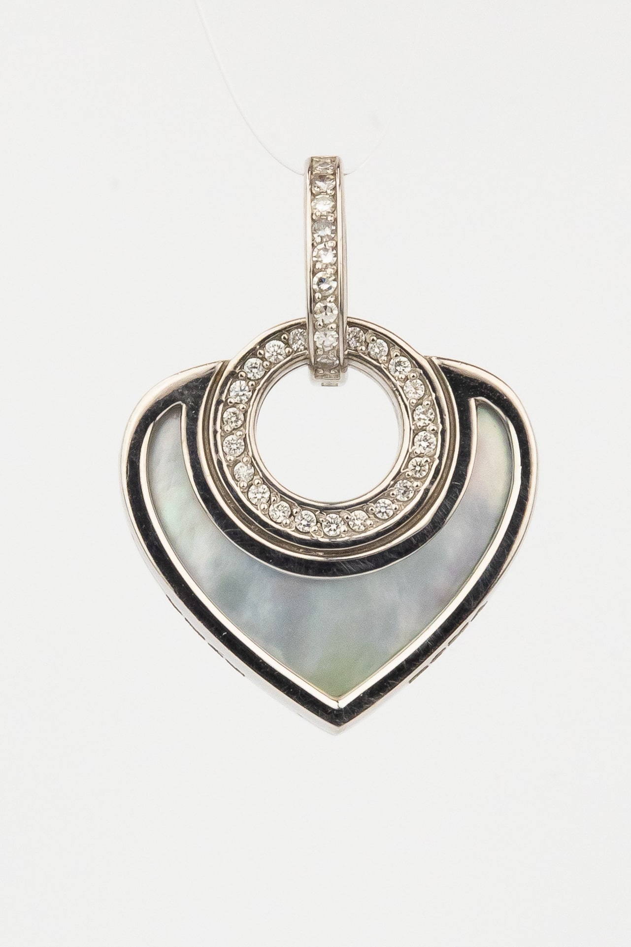 Подвеска из белого золота c бриллиантами, ониксом и перламутром