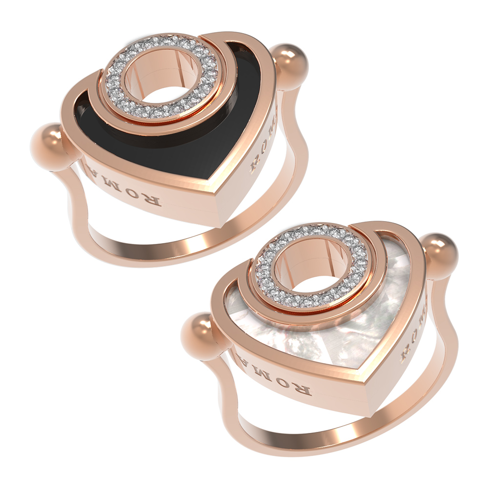 Кольцо из золота c бриллиантами, ониксом и перламутром
