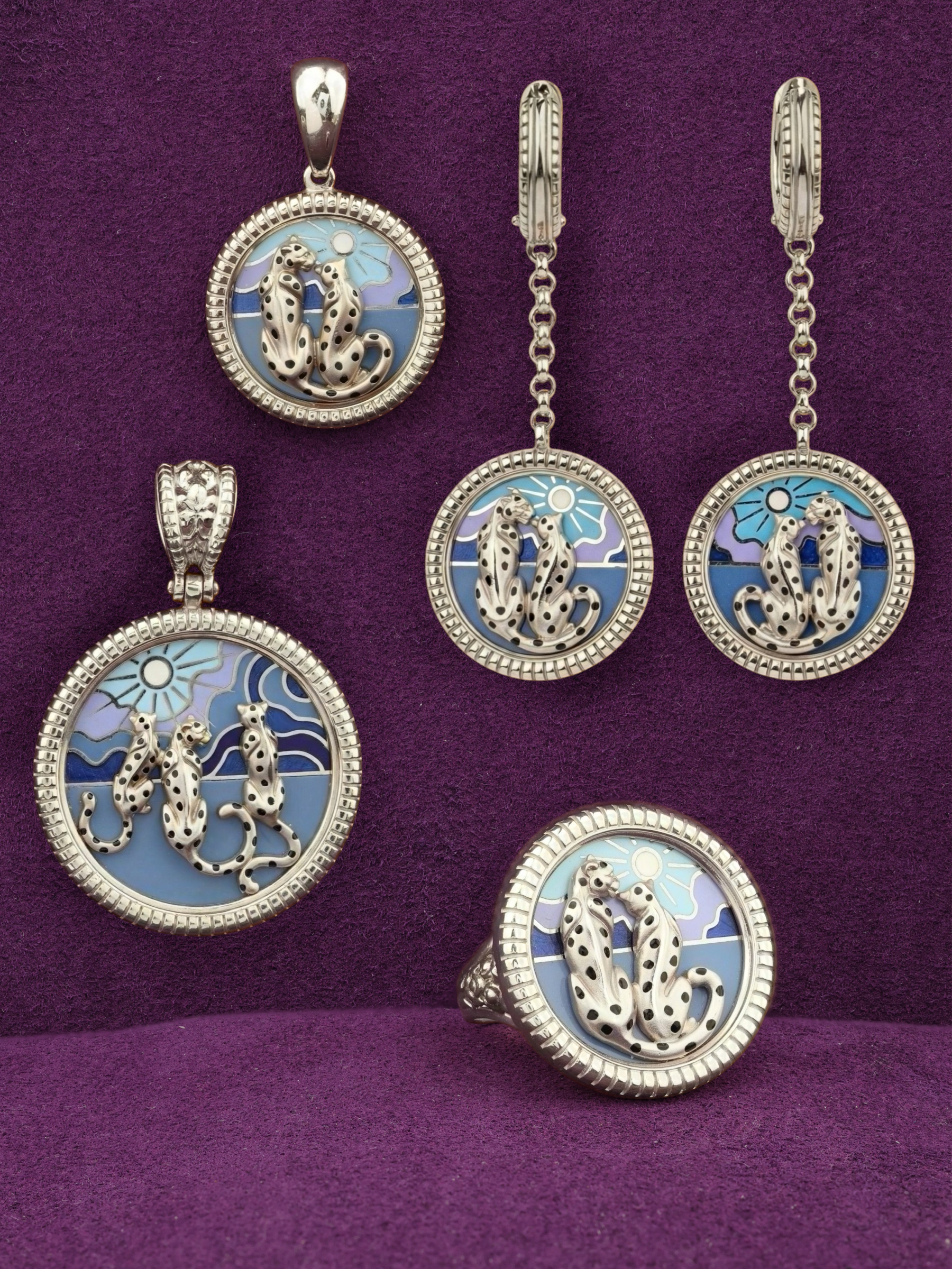 Подвеска из белого золота c эмаль