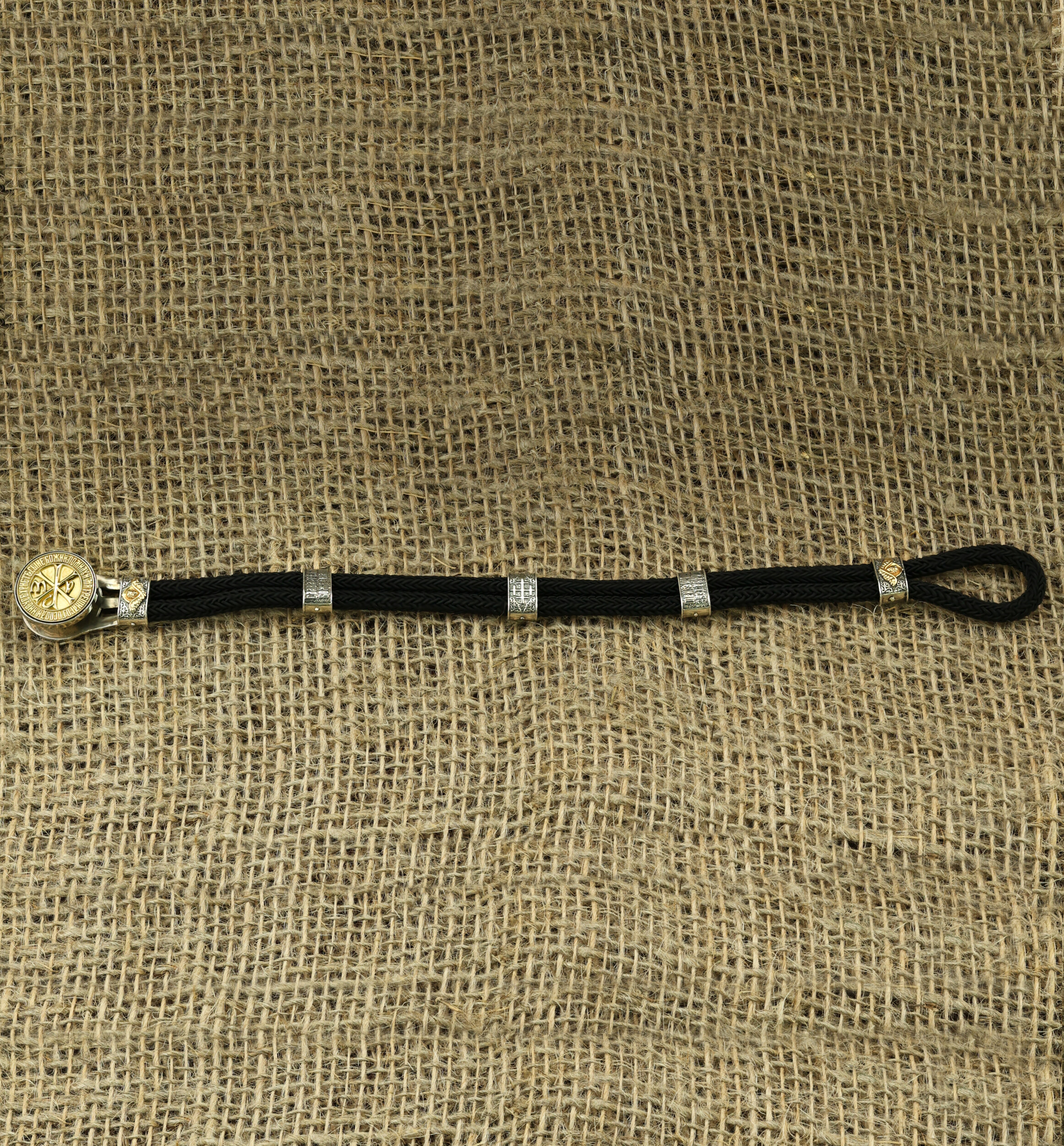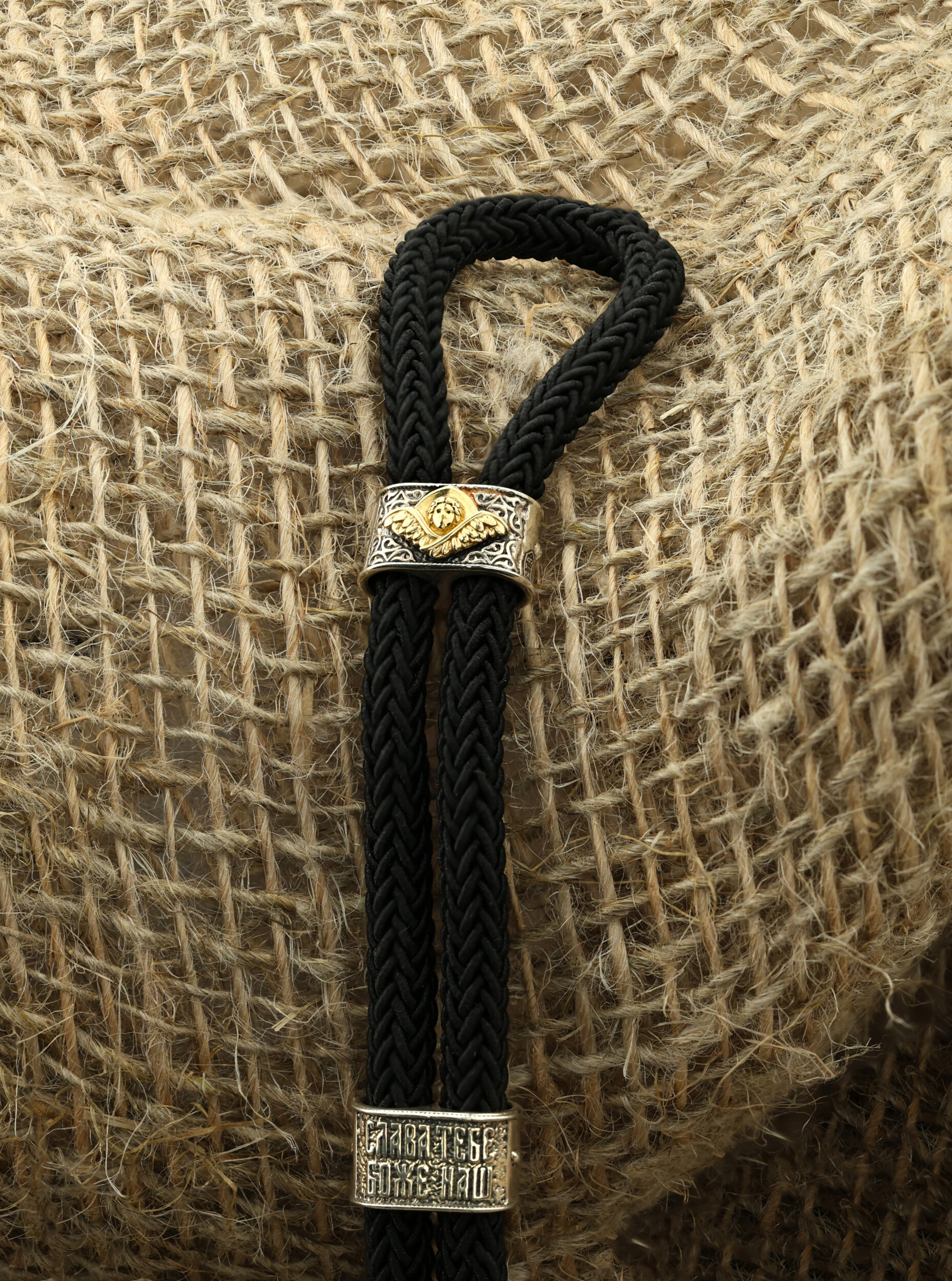 Браслет из серебра и золота c шёлковым шнурком