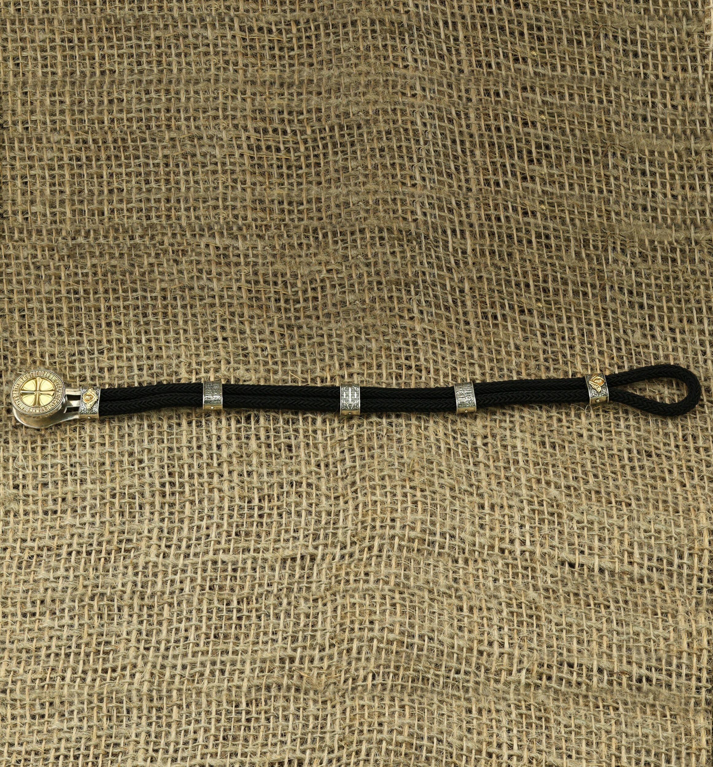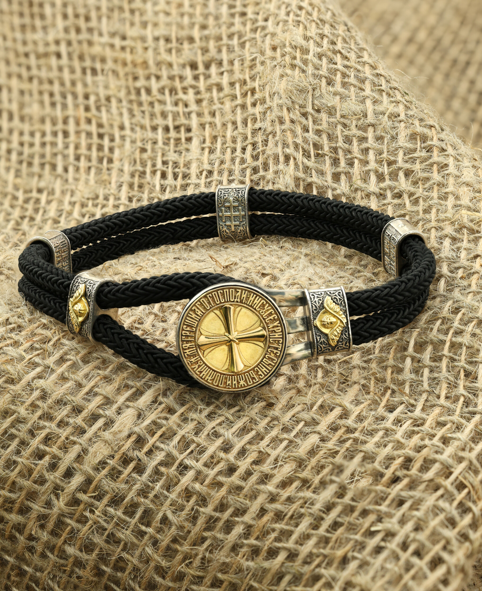 Браслет из серебра и золота c шёлковым шнурком