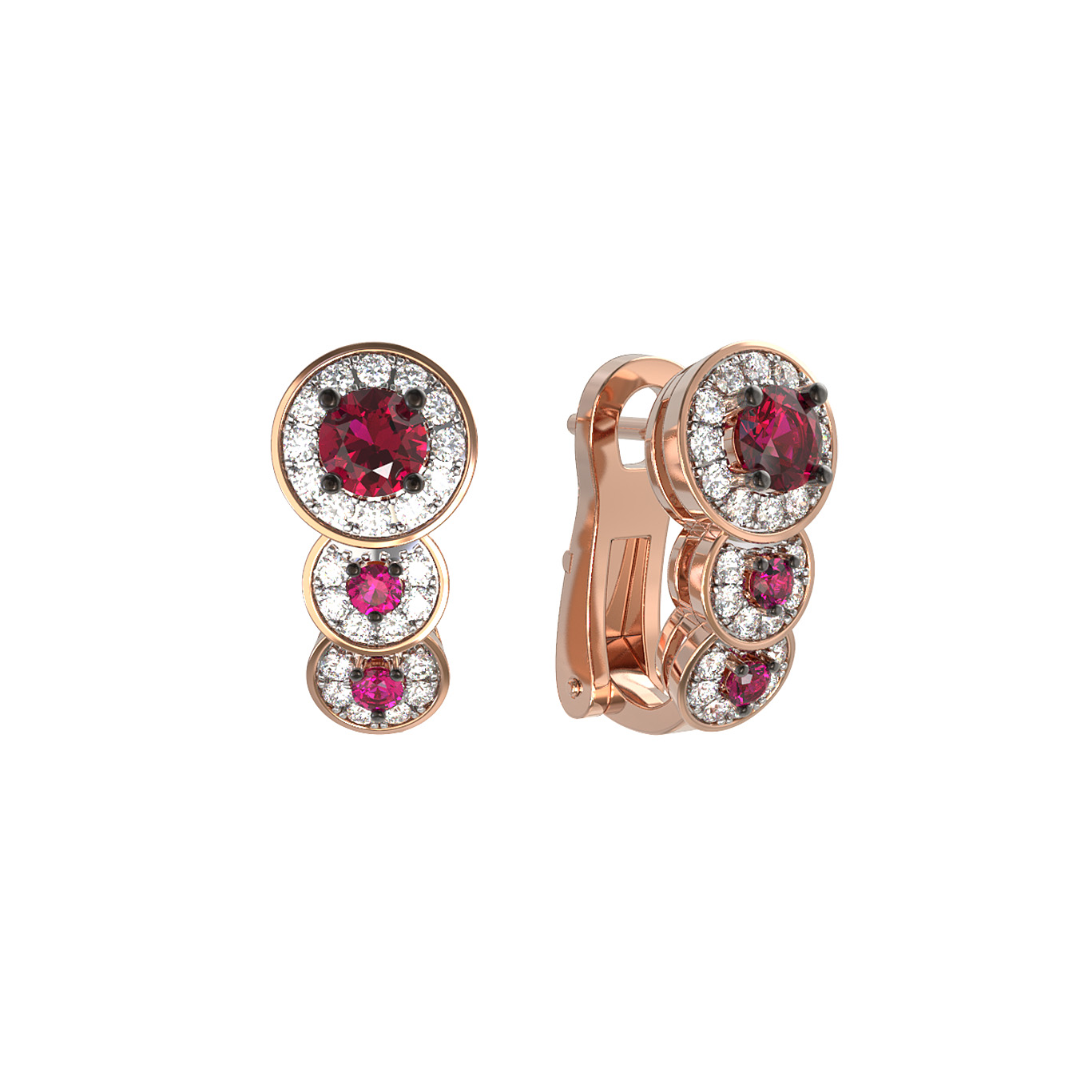 Серьги из золота c бриллиантами и рубином