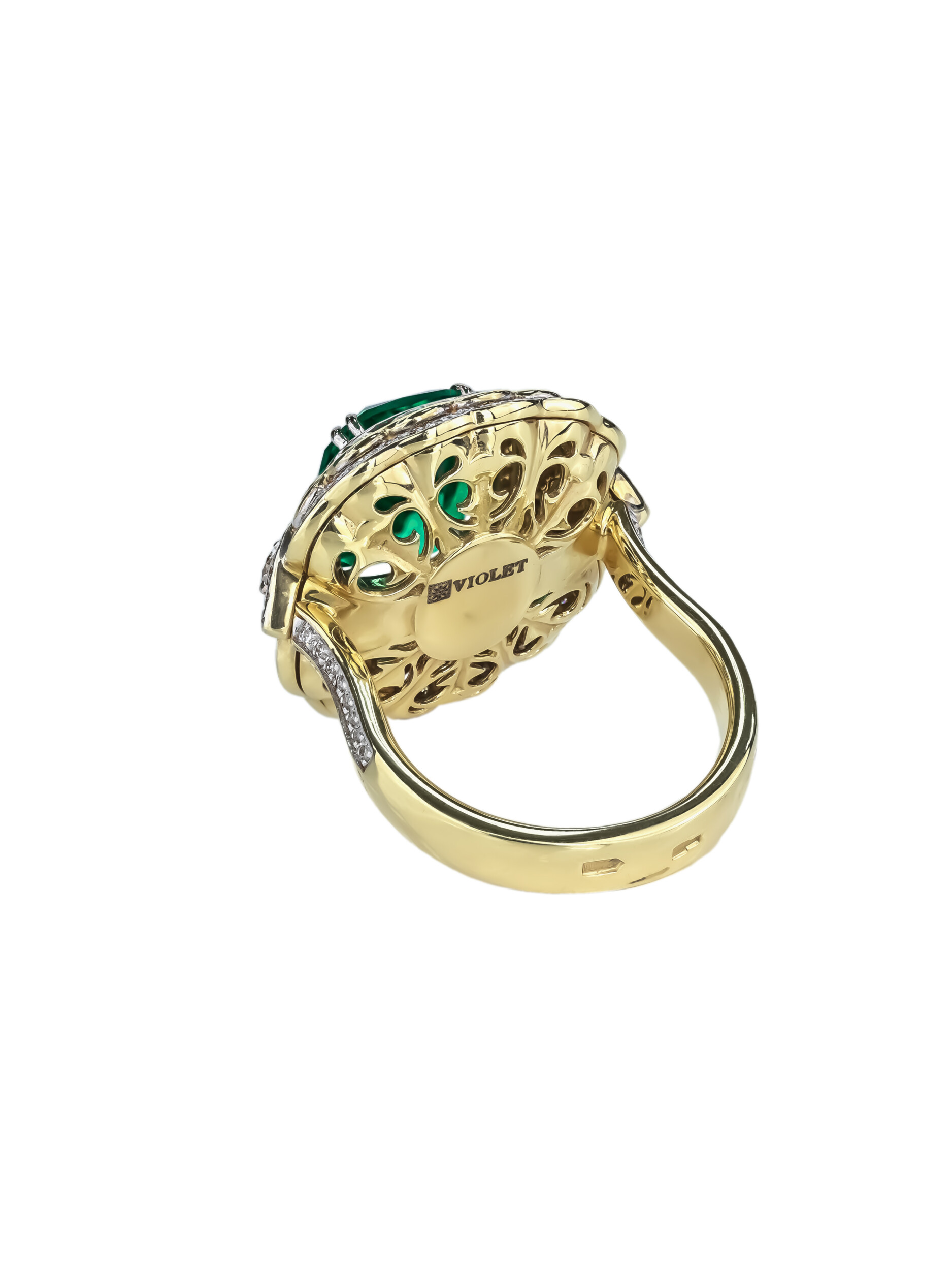 Кольцо из лимонного золота c бриллиантами и изумрудом