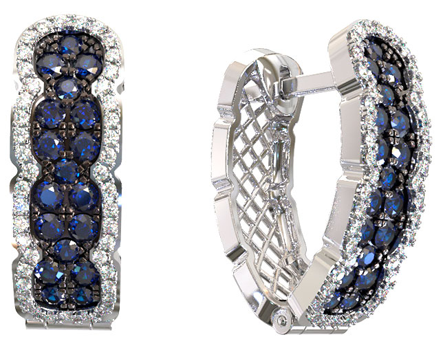 Серьги из белого золота c бриллиантами и сапфиром