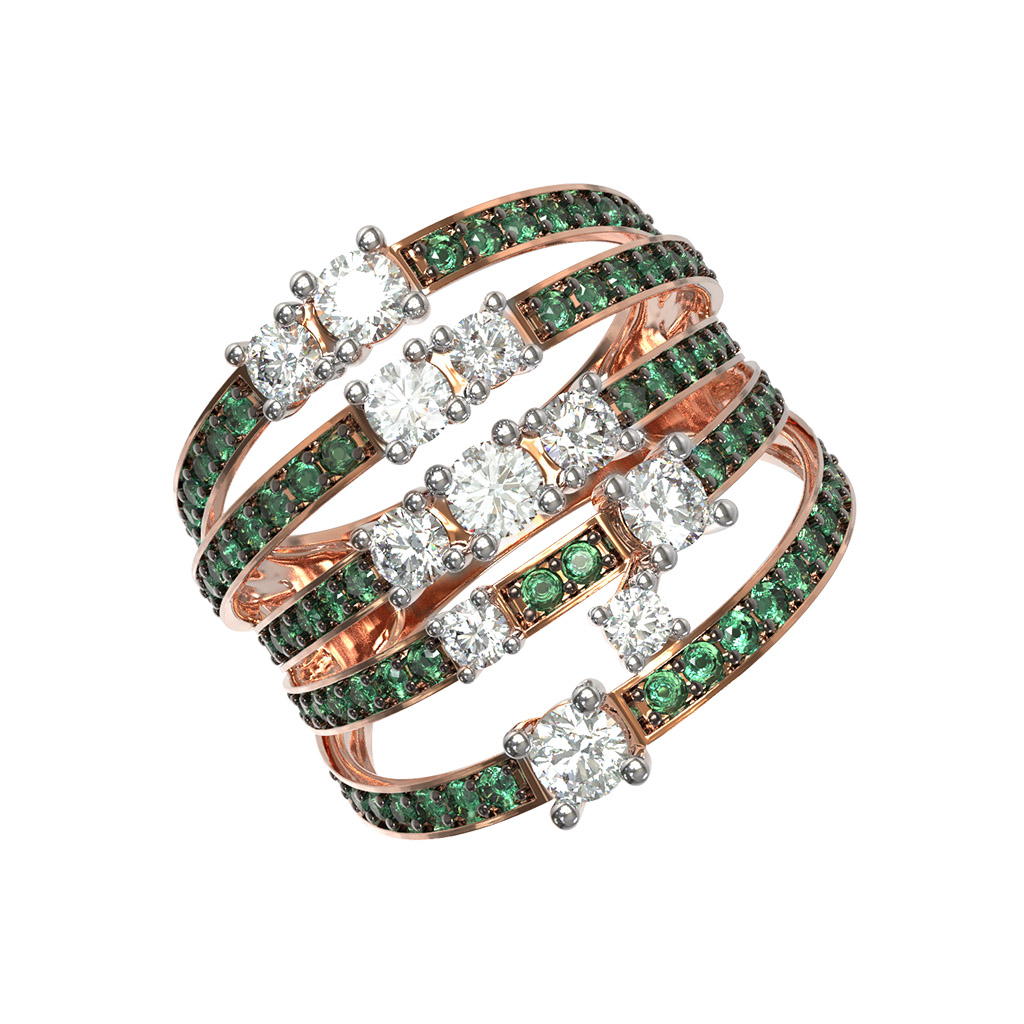 Кольцо из золота c бриллиантами и изумрудом
