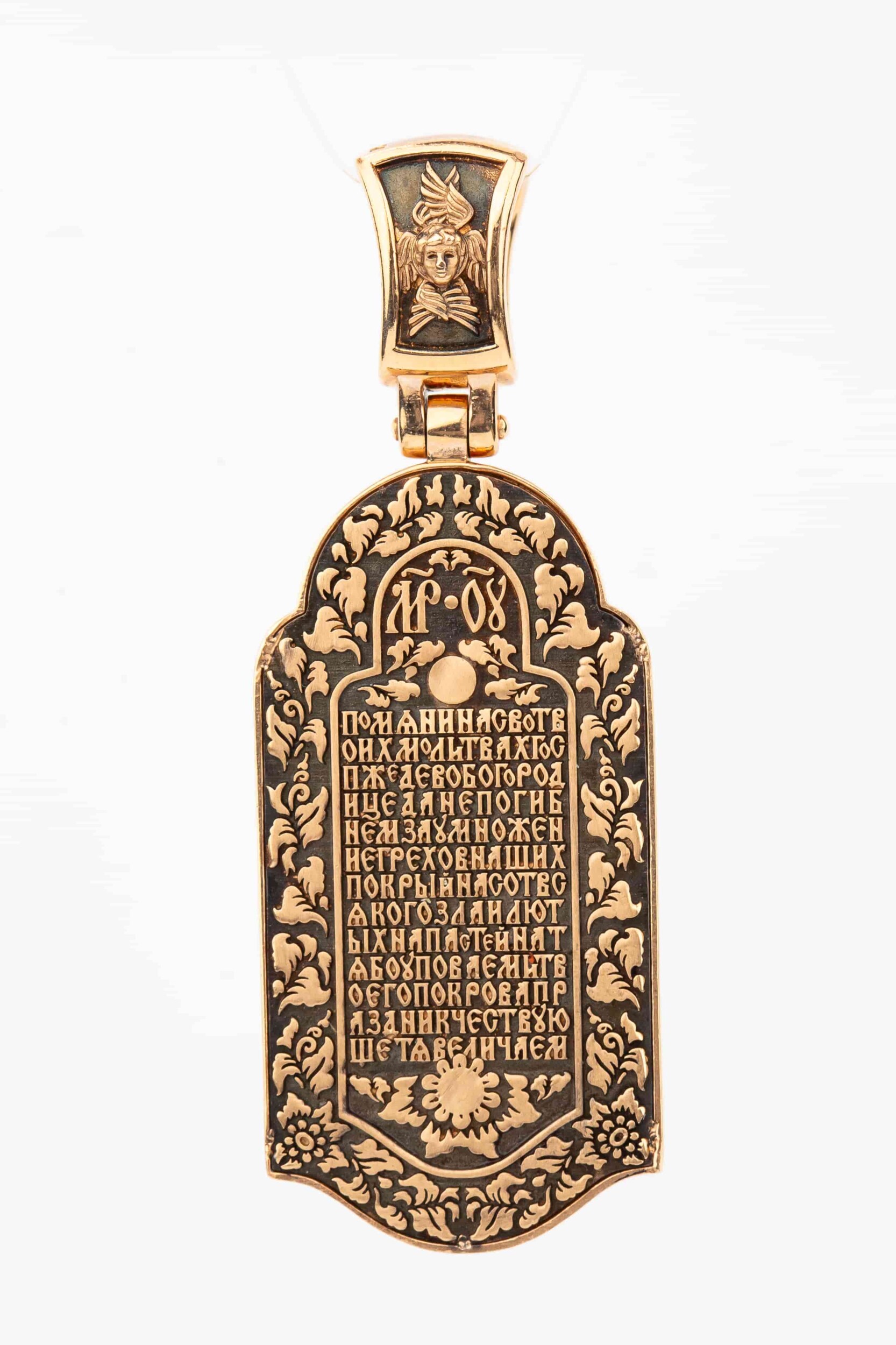 На обороте образка написана молитва: «Помяни нас во Твоих молитвах, Госпоже Дево Богородице, да не погибнем за умножение грехов наших, покрый нас от всякаго зла и лютых напастей; на Тя бо уповаем и, Твоего Покрова праздник чествующе, Тя величаем».