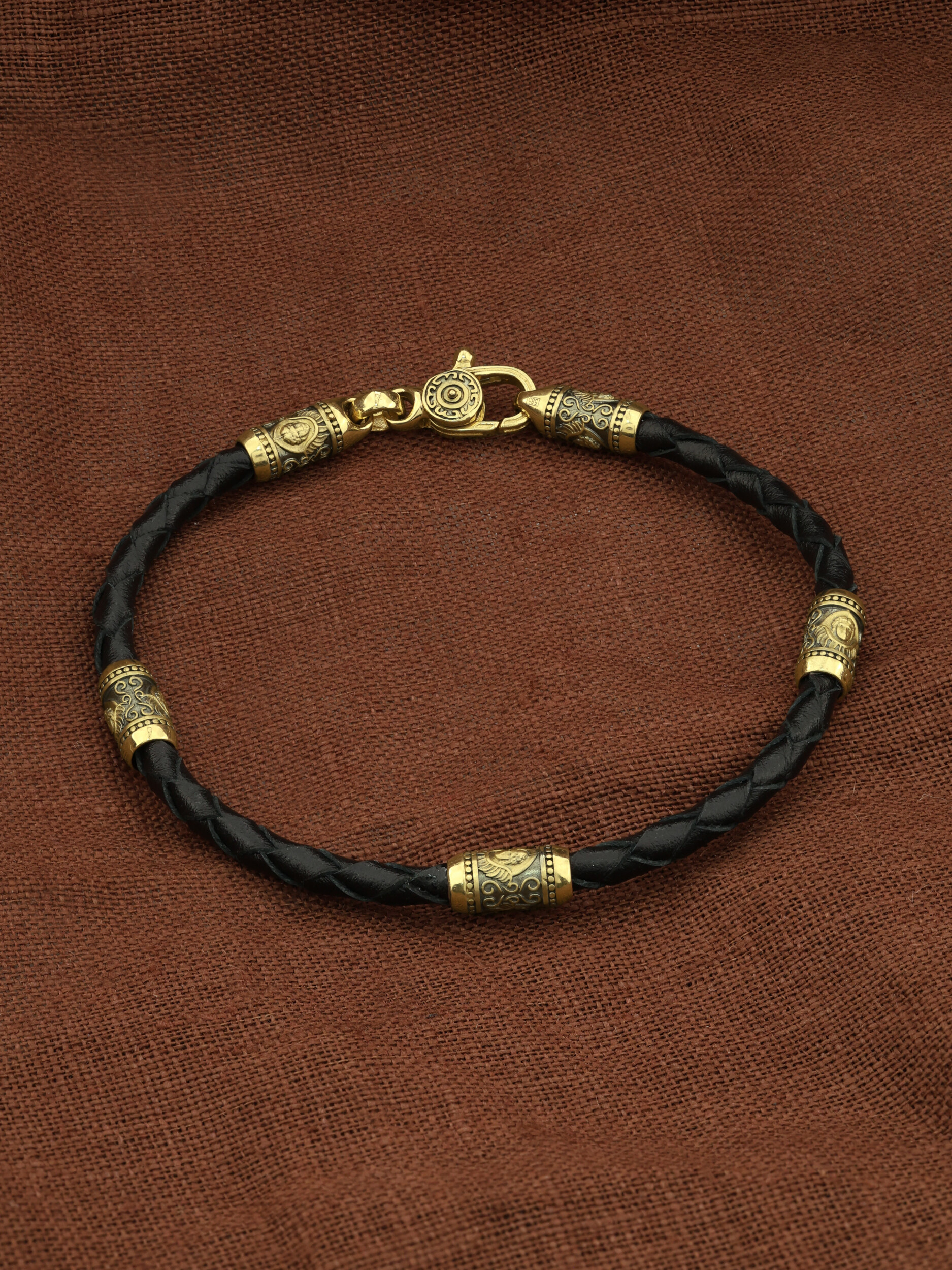 Браслет из лимонного золота c кожаным шнурком