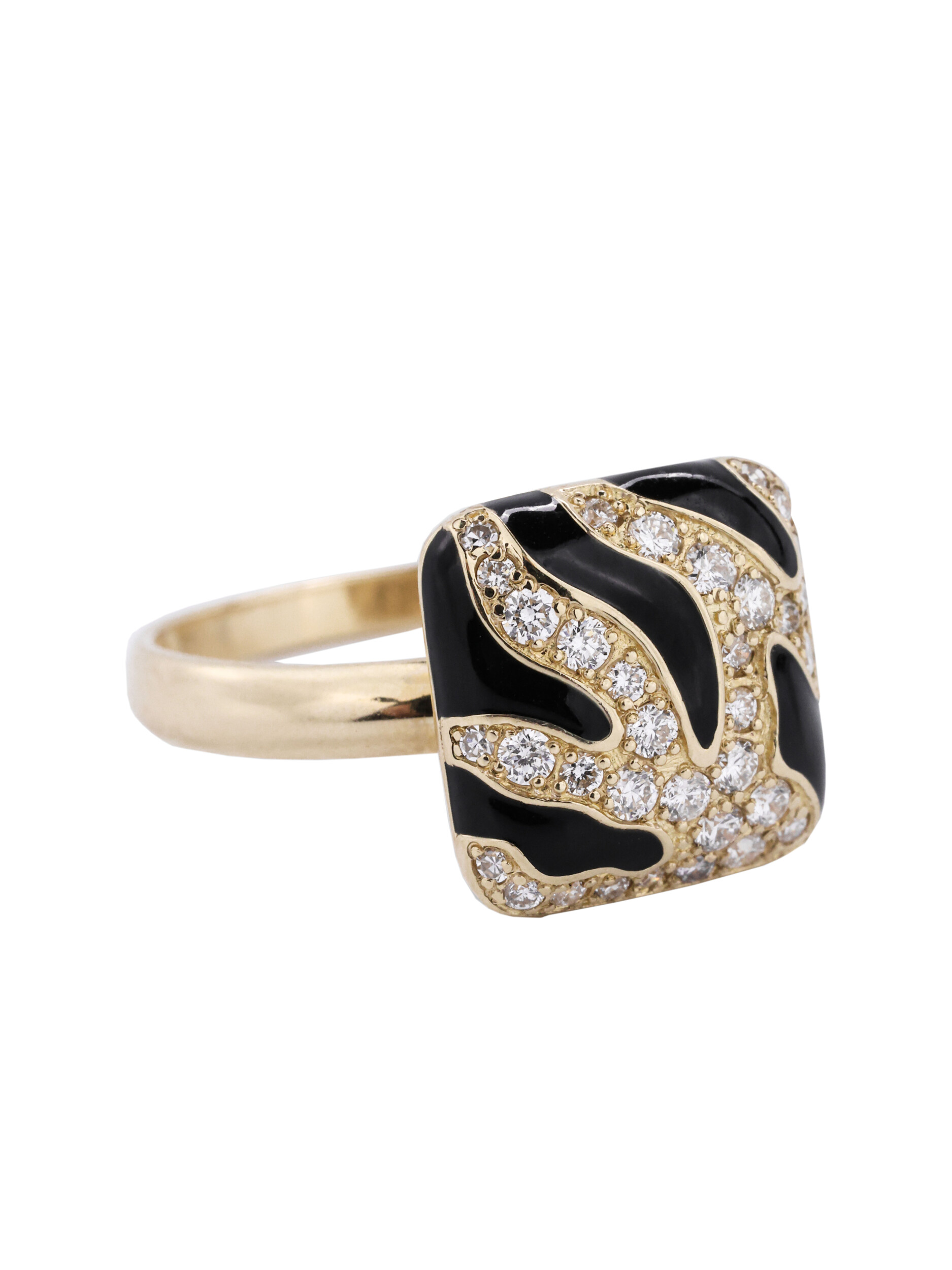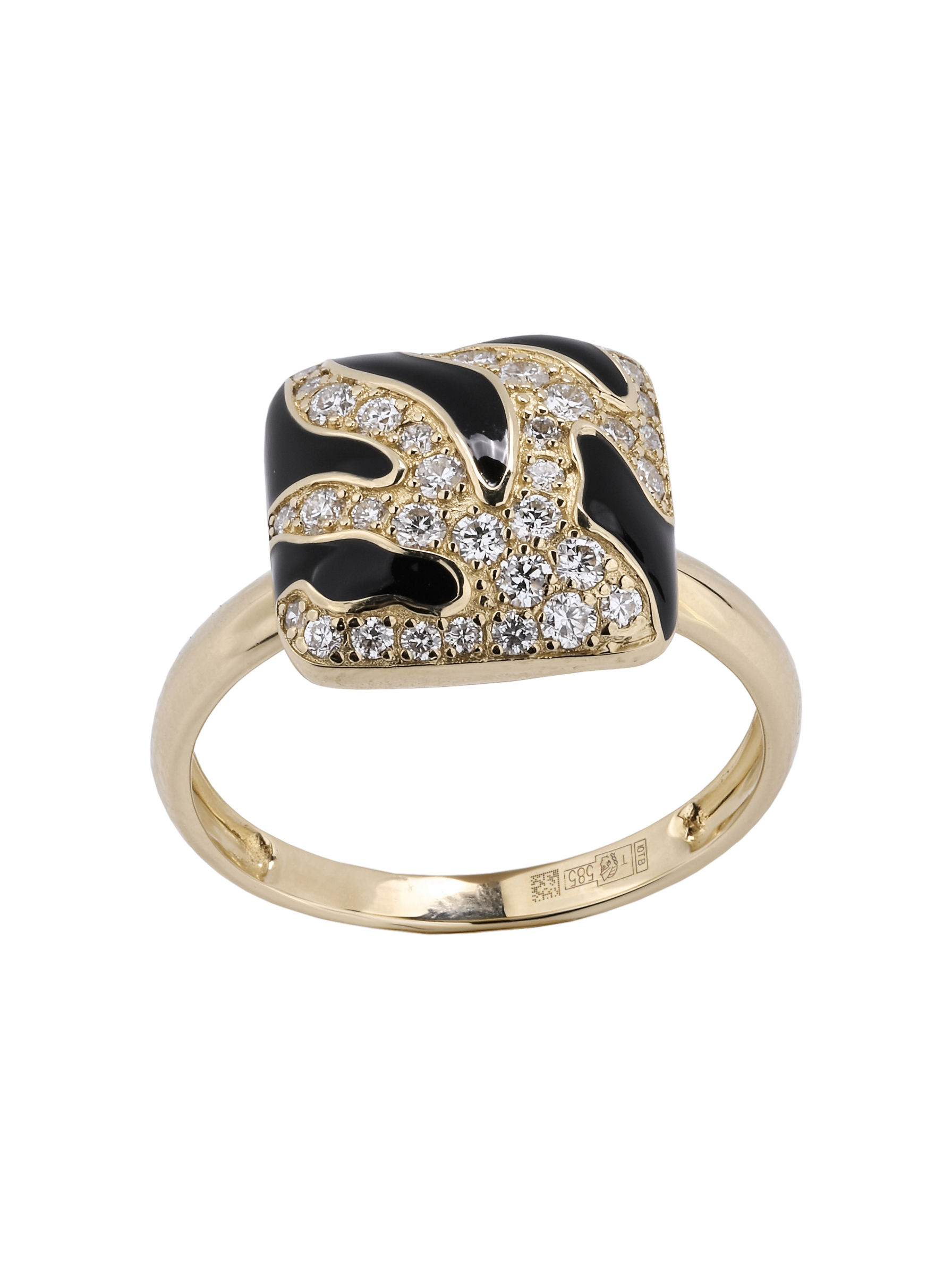 Кольцо из лимонного золота c эмаль и бриллиантами
