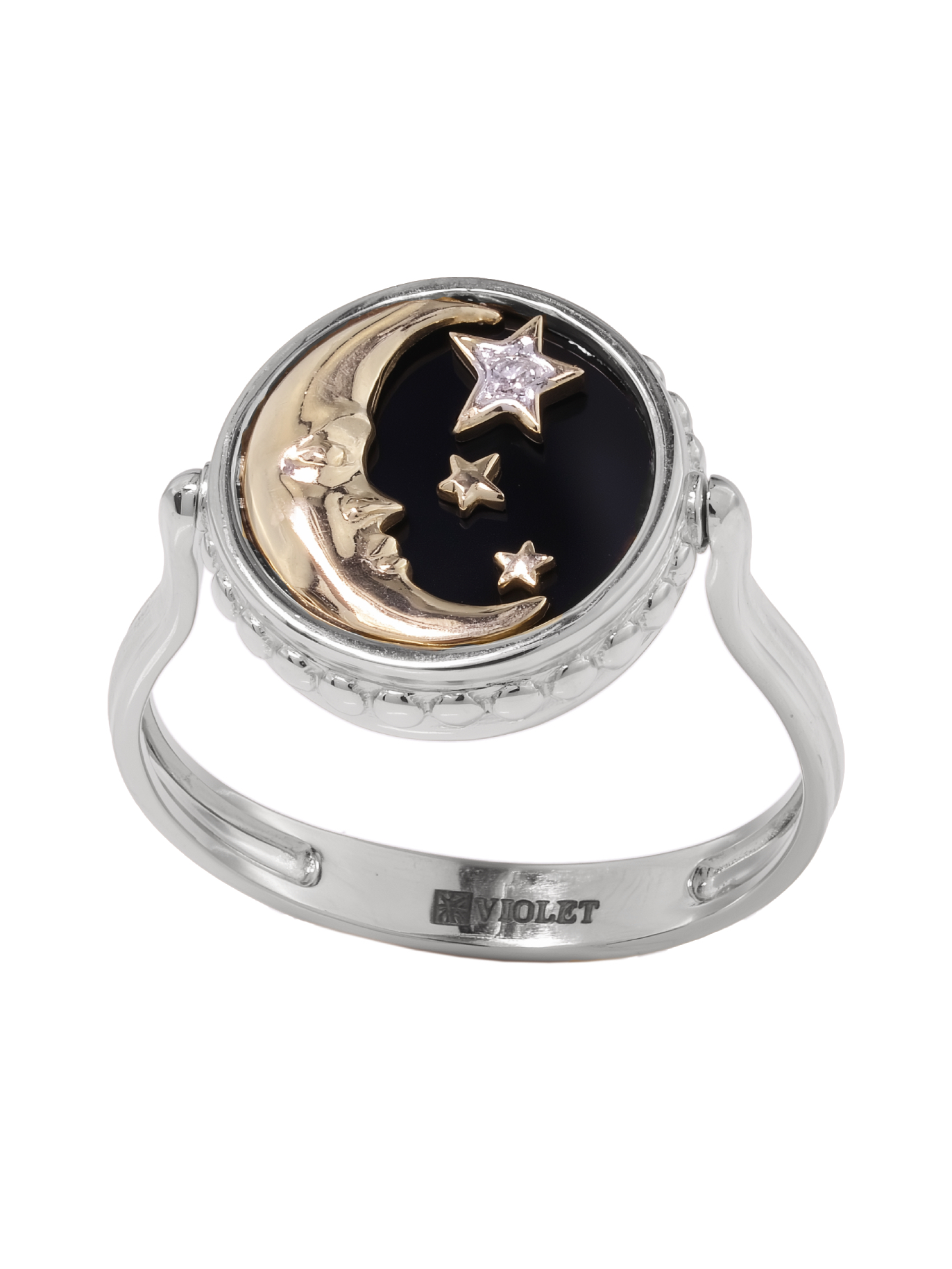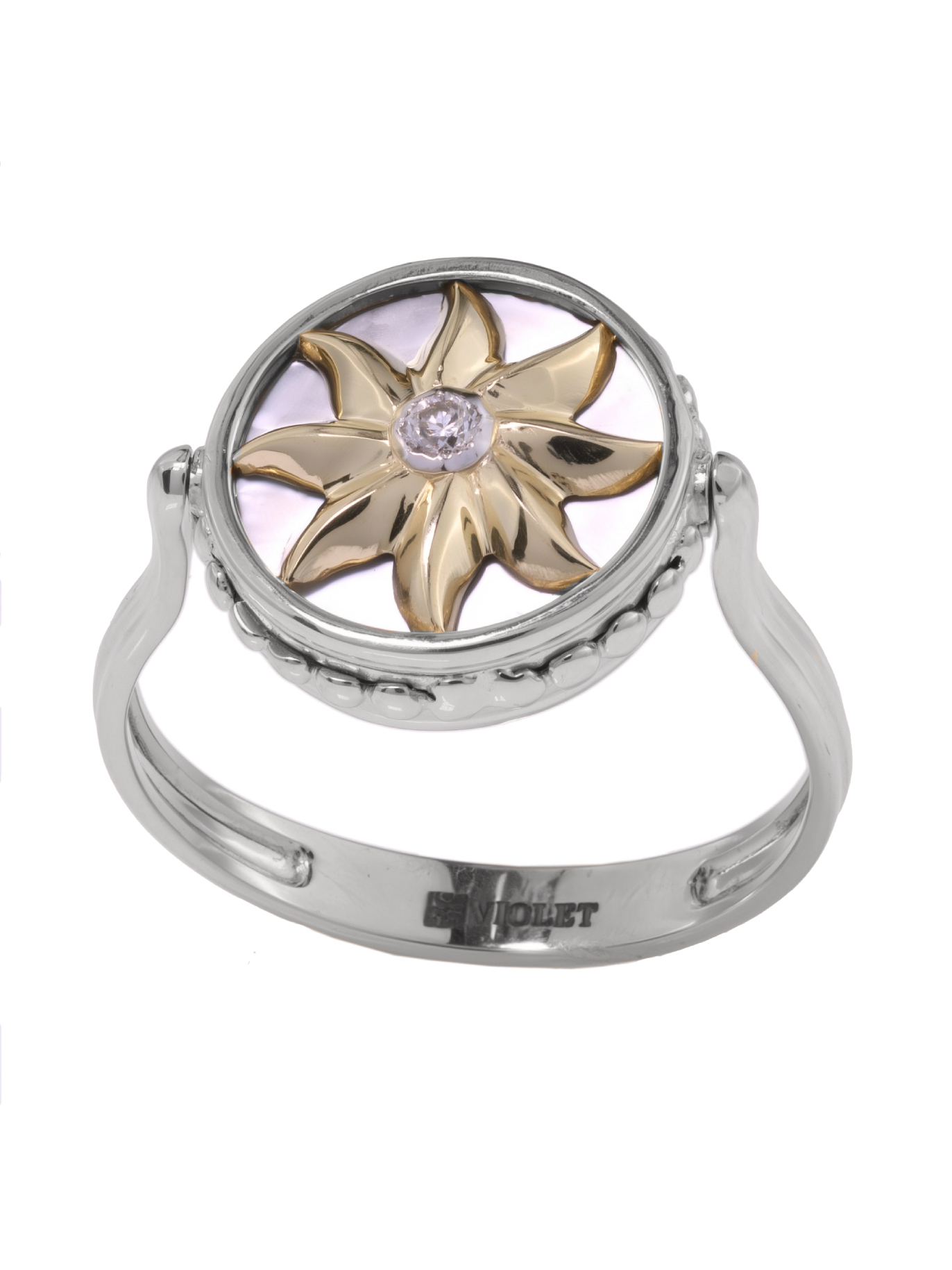 Кольцо из белого золота c бриллиантами, ониксом и перламутром