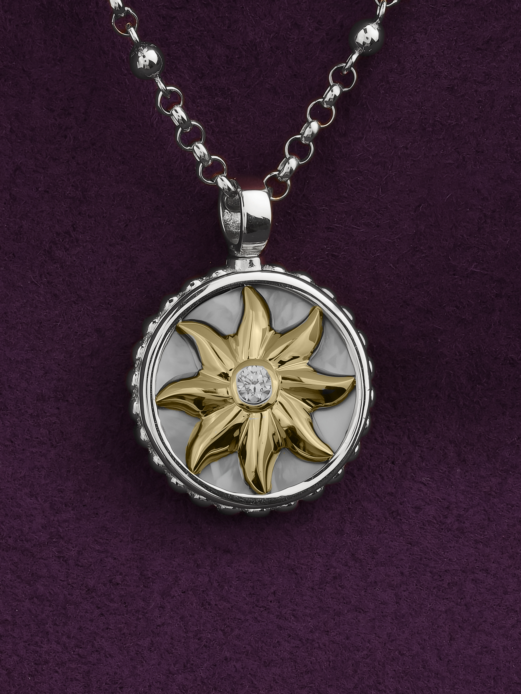 Колье из белого золота c бриллиантами, ониксом и перламутром