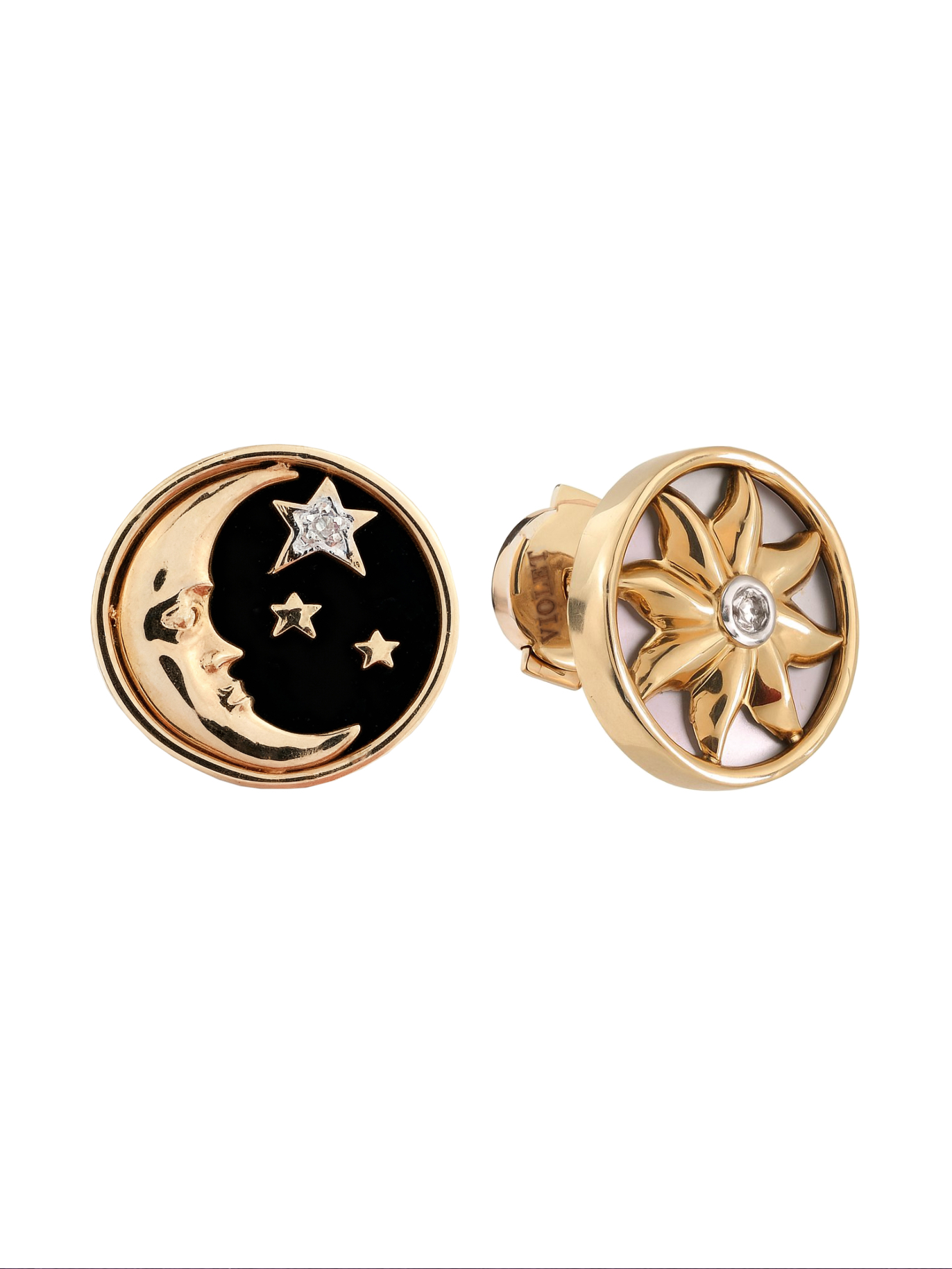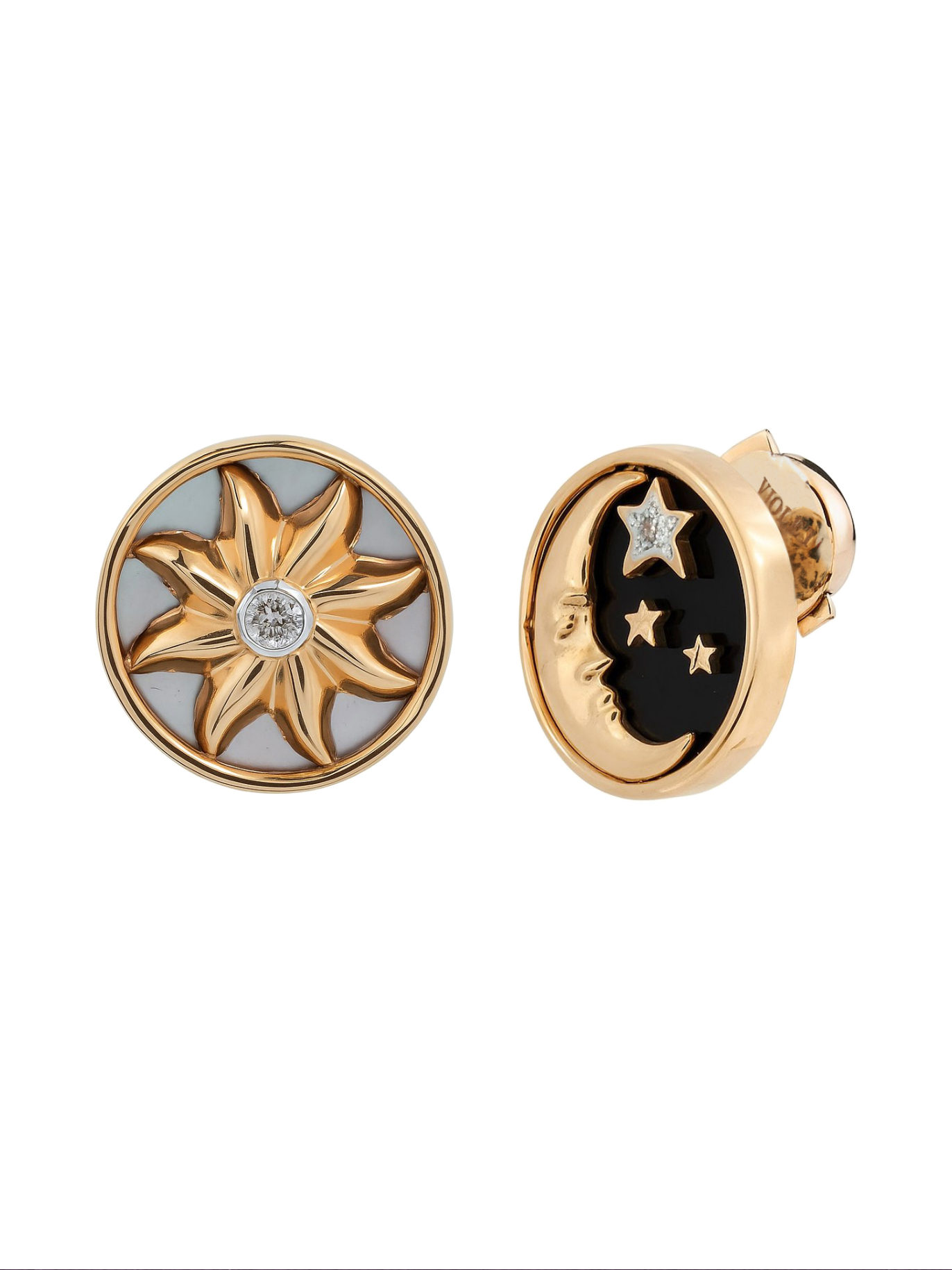 Серьги из золота c бриллиантами, ониксом и перламутром
