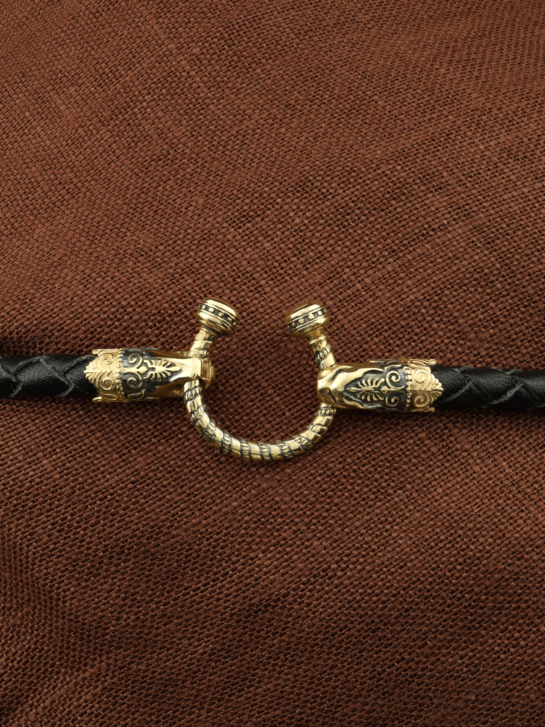 Шнурок кожаный из лимонного золота c кожаным шнурком